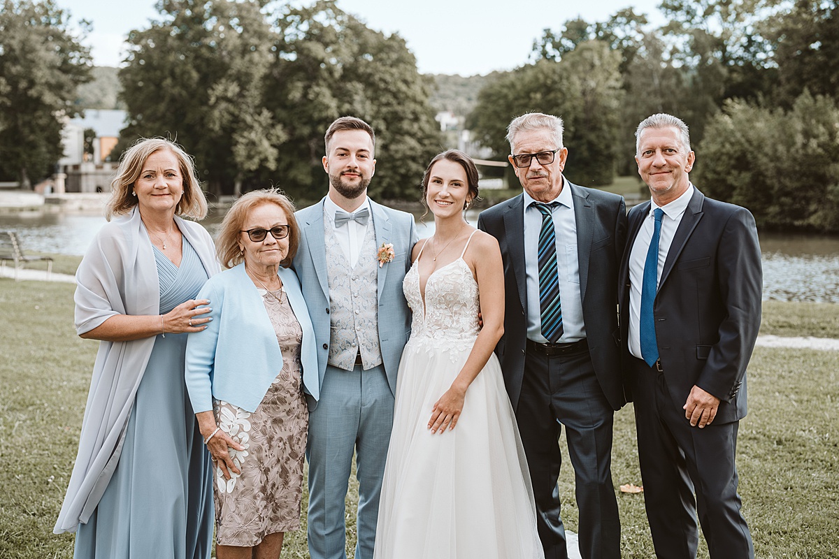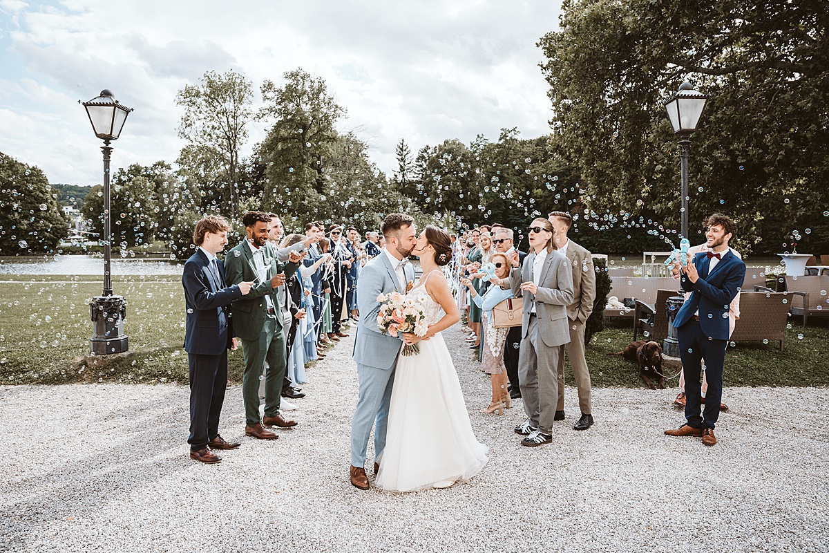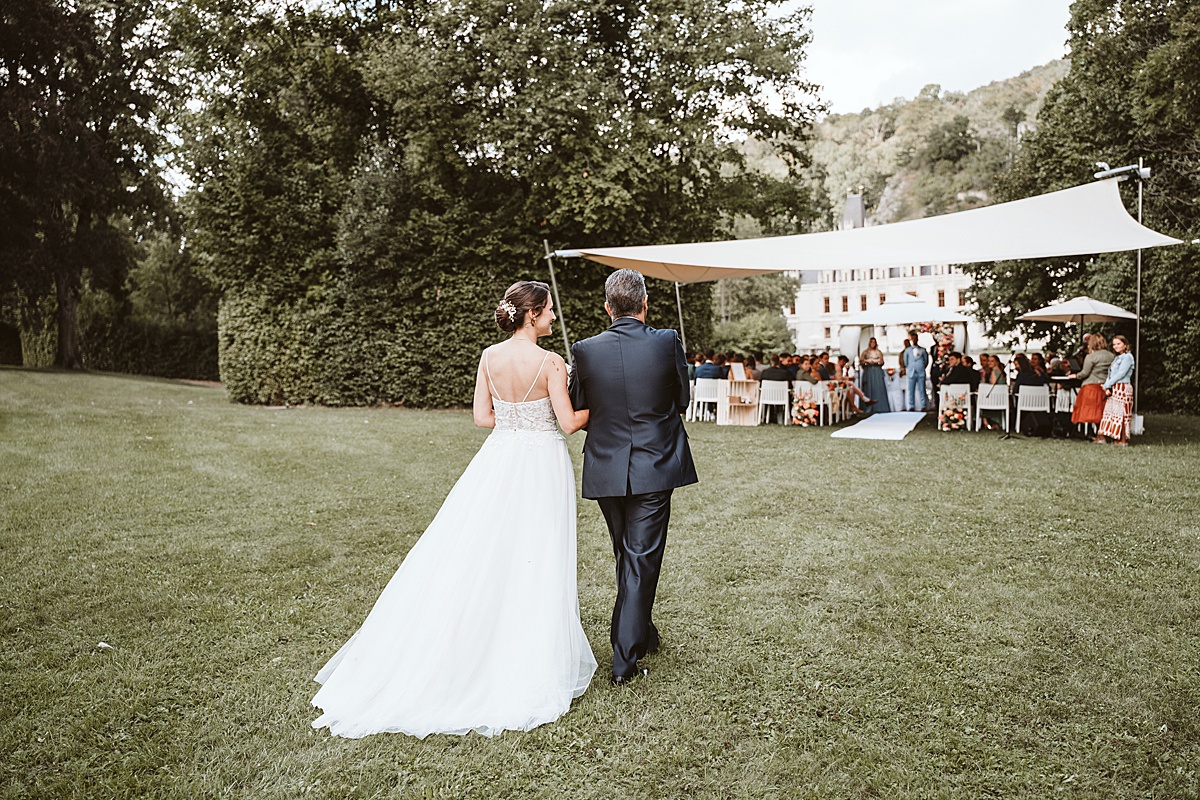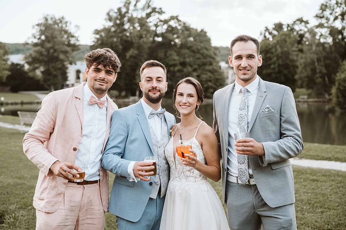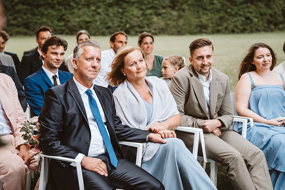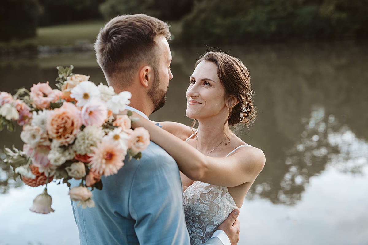 Die Trauung fand mit direktem Blick auf das Schloss statt – unter freiem Himmel, umgeben von Familie und Freunden. Mein Fokus lag darauf, echte Emotionen festzuhalten: Lächeln, Blicke, kleine Gesten – die Momente, die man nicht planen kann, die aber alles über den Tag erzählen.
