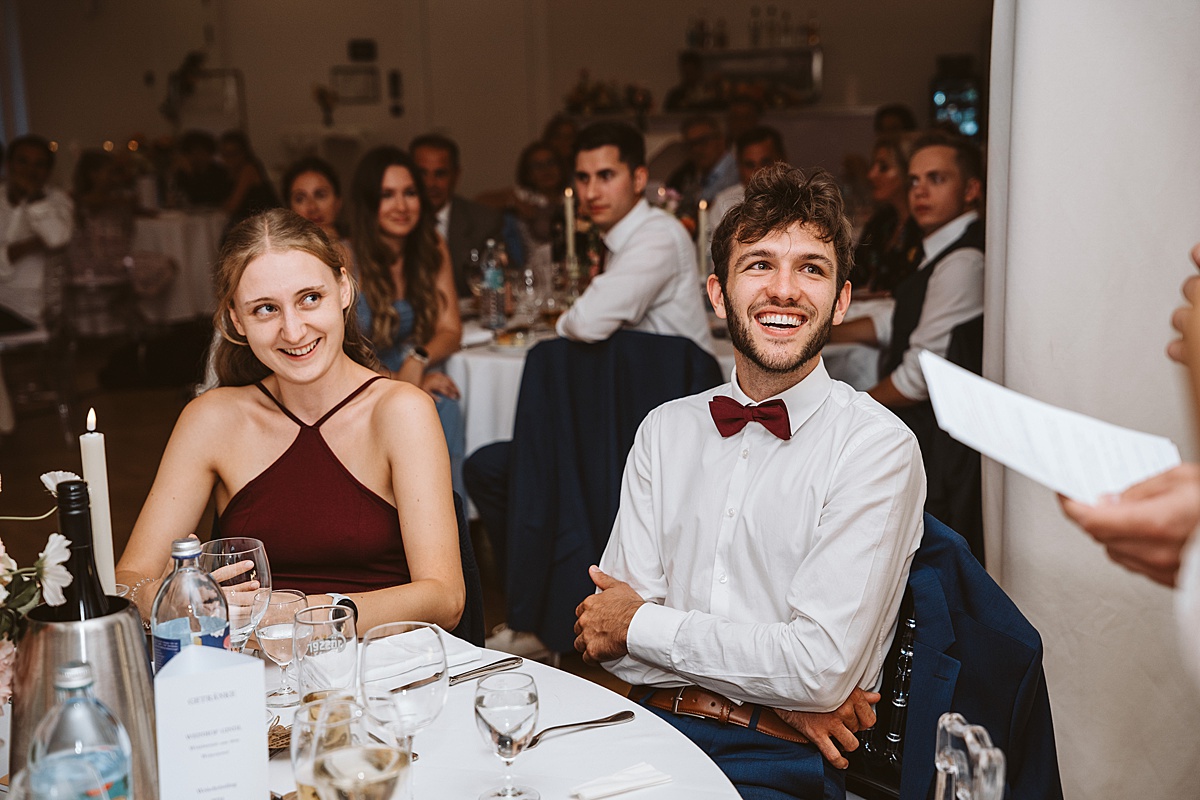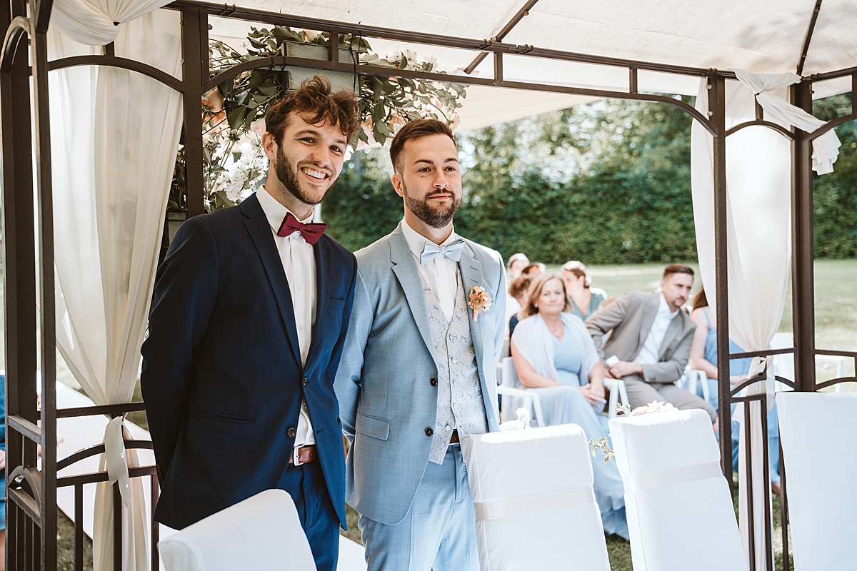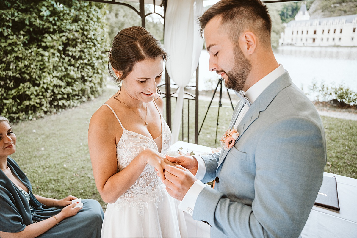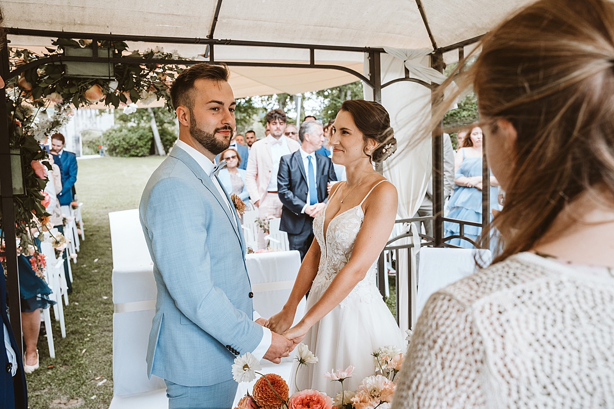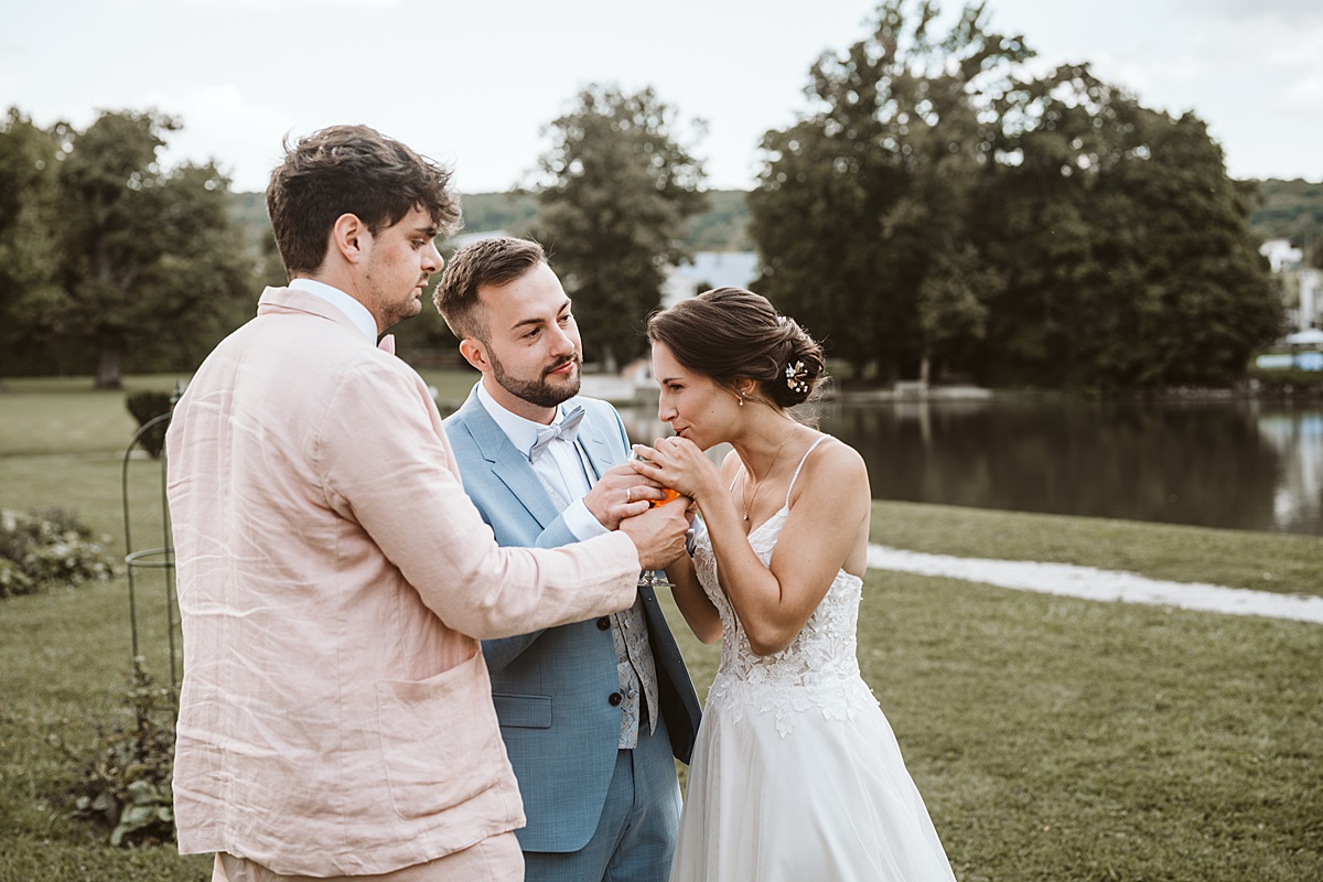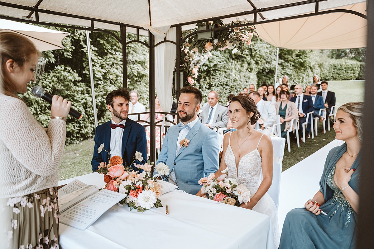 Die Trauung fand mit direktem Blick auf das Schloss statt – unter freiem Himmel, umgeben von Familie und Freunden. Mein Fokus lag darauf, echte Emotionen festzuhalten: Lächeln, Blicke, kleine Gesten – die Momente, die man nicht planen kann, die aber alles über den Tag erzählen.