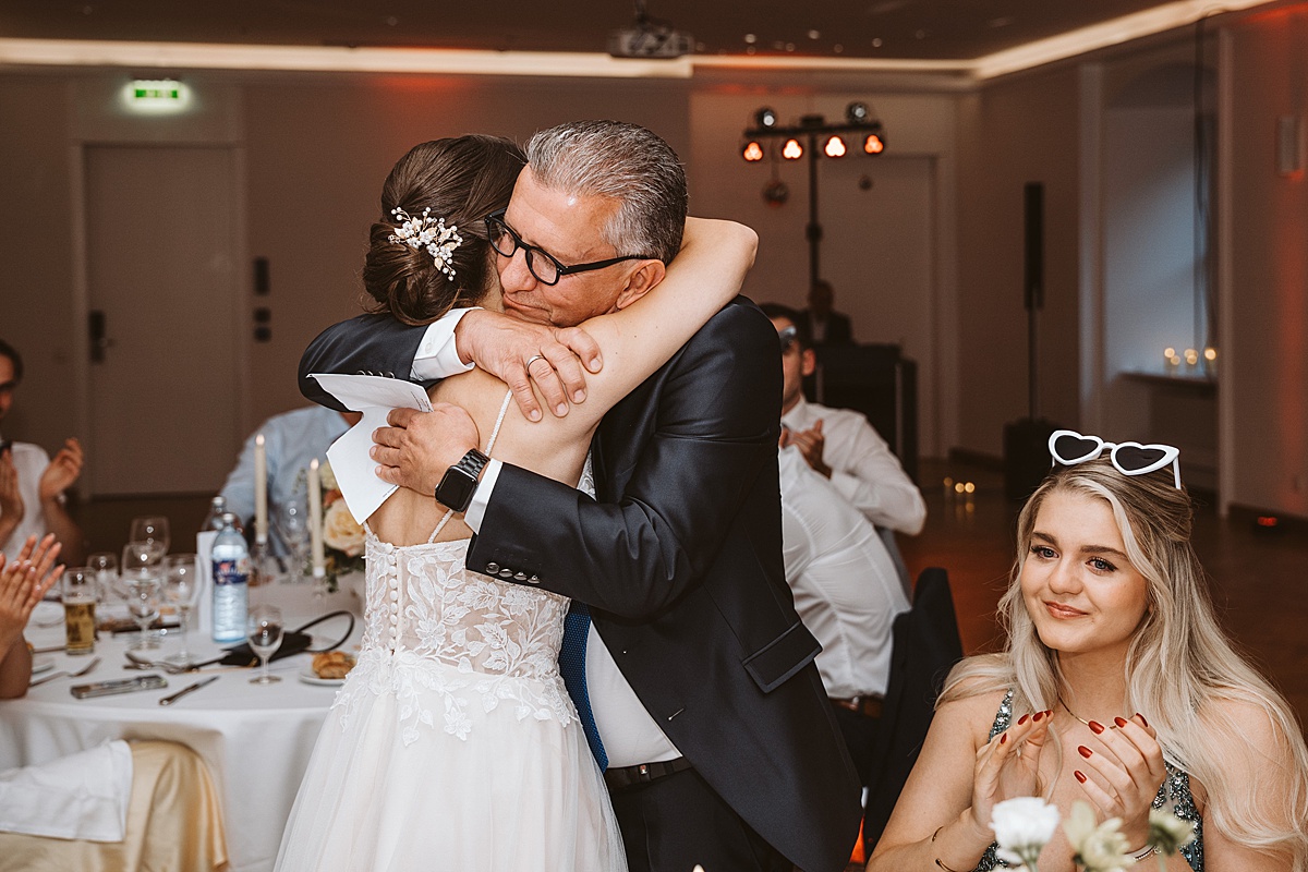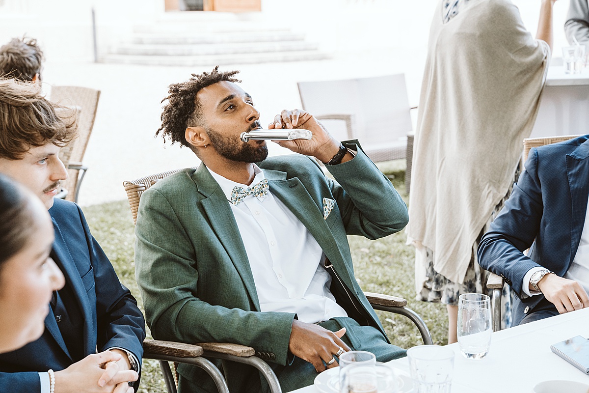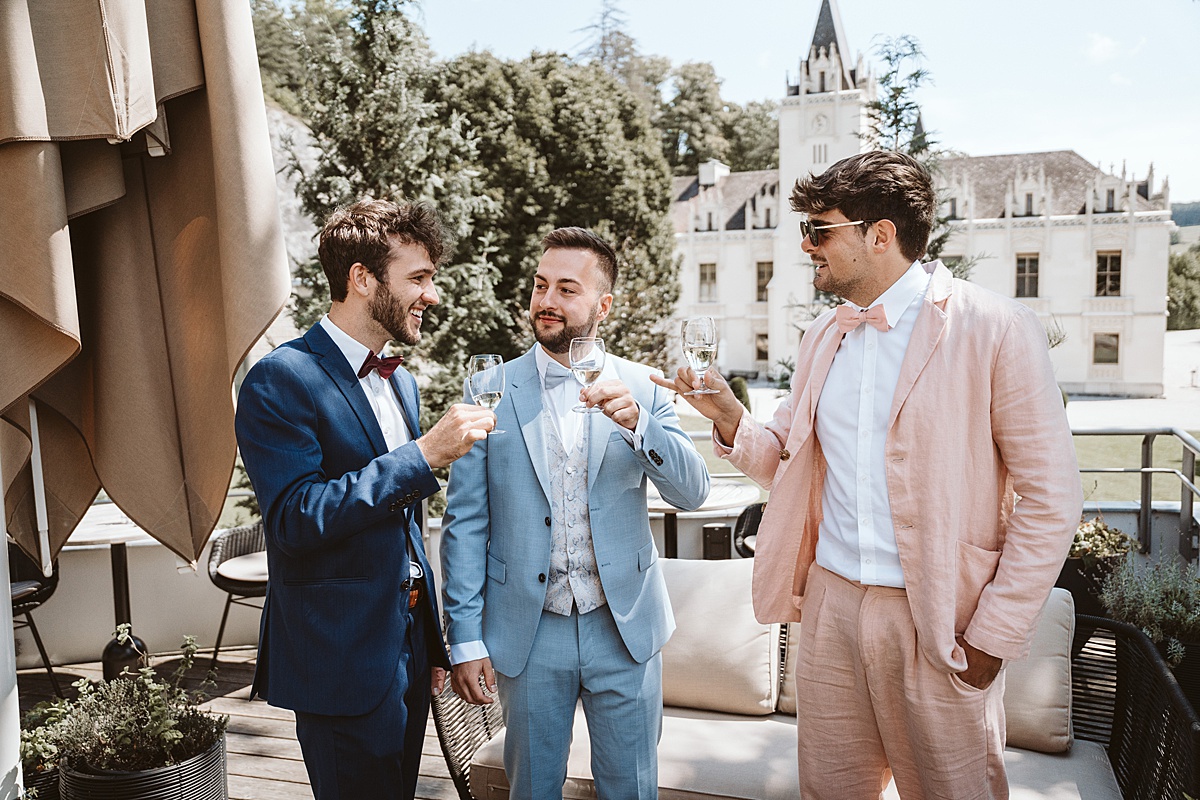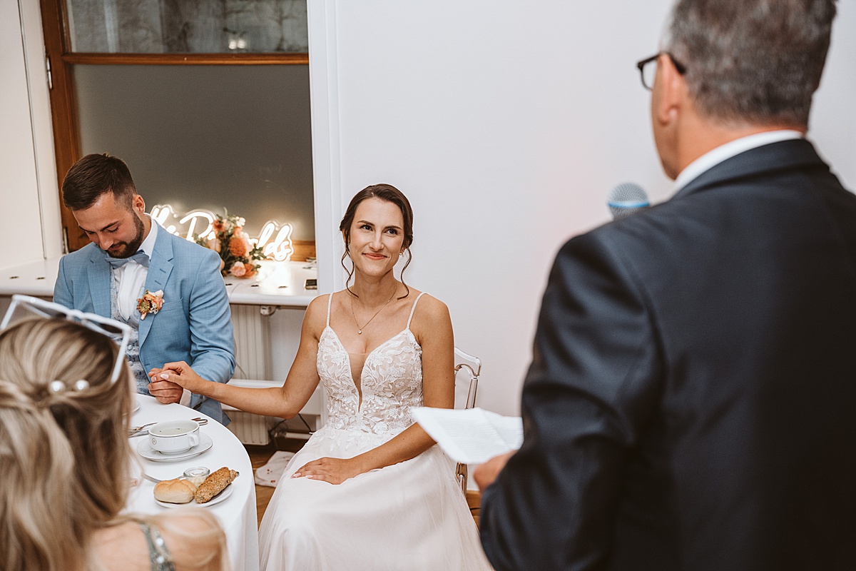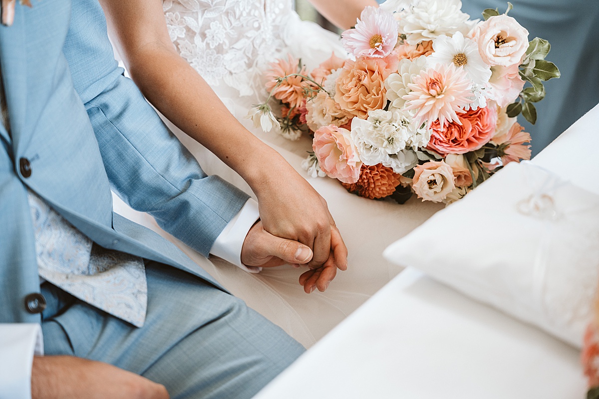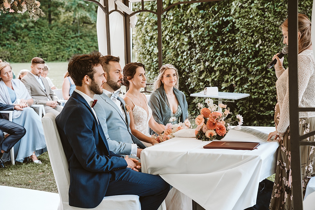 Die Trauung fand mit direktem Blick auf das Schloss statt – unter freiem Himmel, umgeben von Familie und Freunden. Mein Fokus lag darauf, echte Emotionen festzuhalten: Lächeln, Blicke, kleine Gesten – die Momente, die man nicht planen kann, die aber alles über den Tag erzählen.