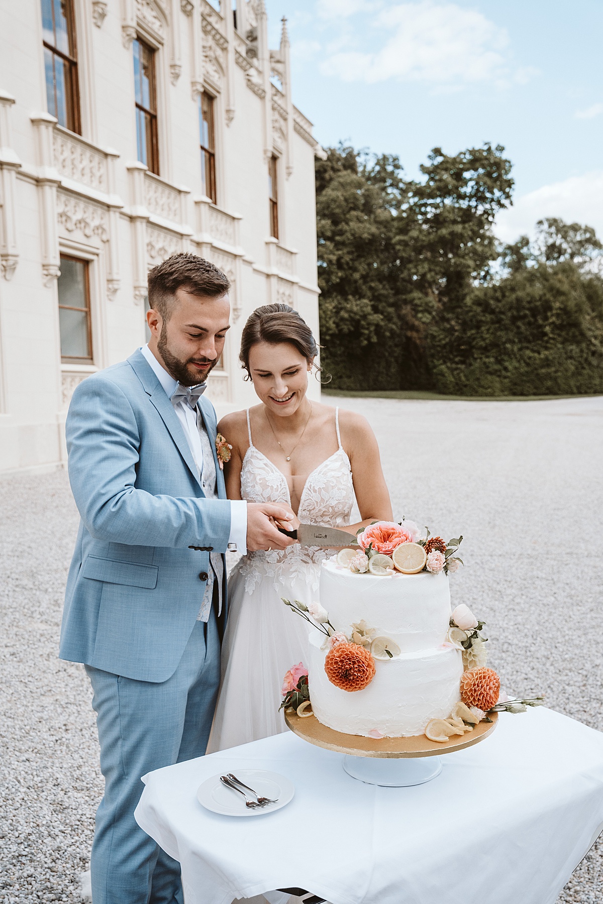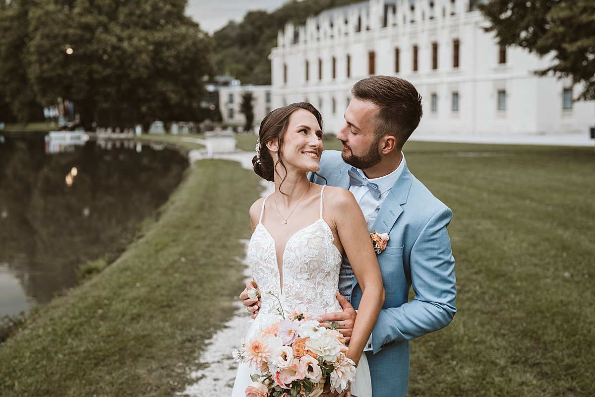 Kathrin und Ronny feierten ihre Sommerhochzeit im Schloss Hernstein, eine wunderschöne Hochzeitslocation in Niederösterreich unweit von Wien. Zwischen klassischer Architektur, ruhigem Wasser und viel Grün entstand eine klare, elegante aber doch gemütliche Stimmung, perfekt für natürliche Hochzeitsfotos.