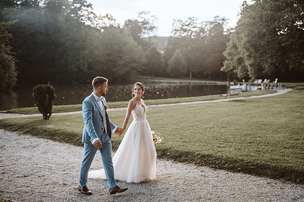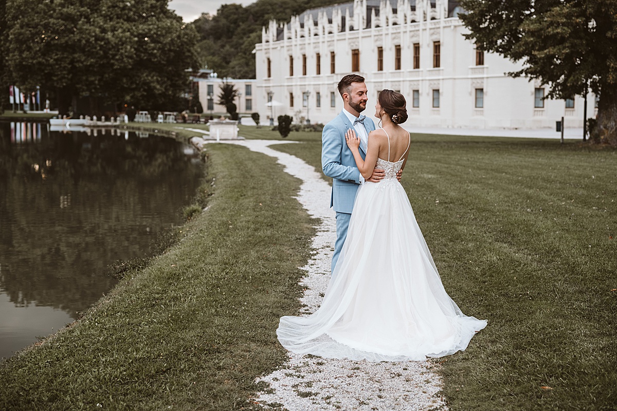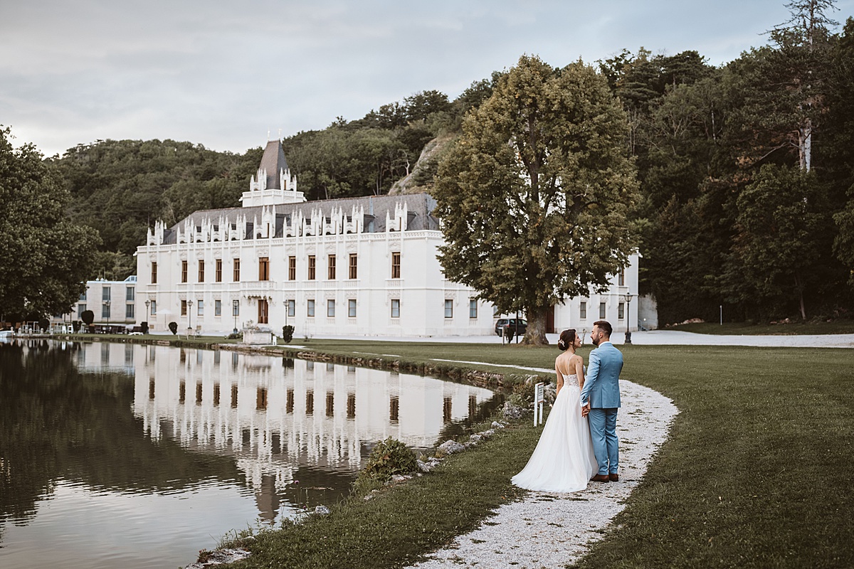 Das Schloss Hernstein bietet mit seiner Kombination aus klassischer Kulisse und ruhiger Natur vielseitige Möglichkeiten für Hochzeitsfotos. Ob im weitläufigen Park, beim Spaziergang rund um den Teich oder im Innenhof – überall entstehen Bilder, die die Atmosphäre dieses Ortes einfangen.