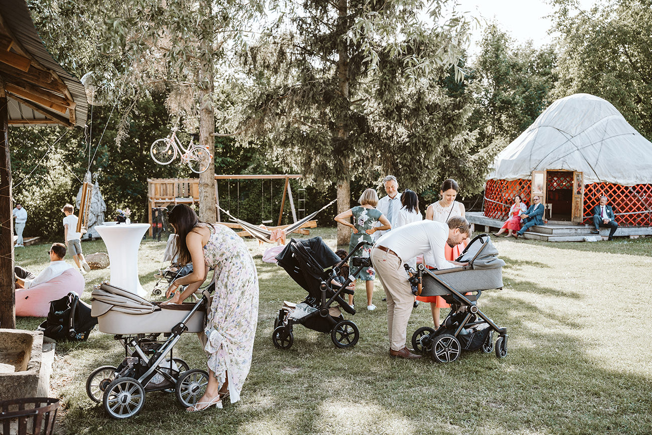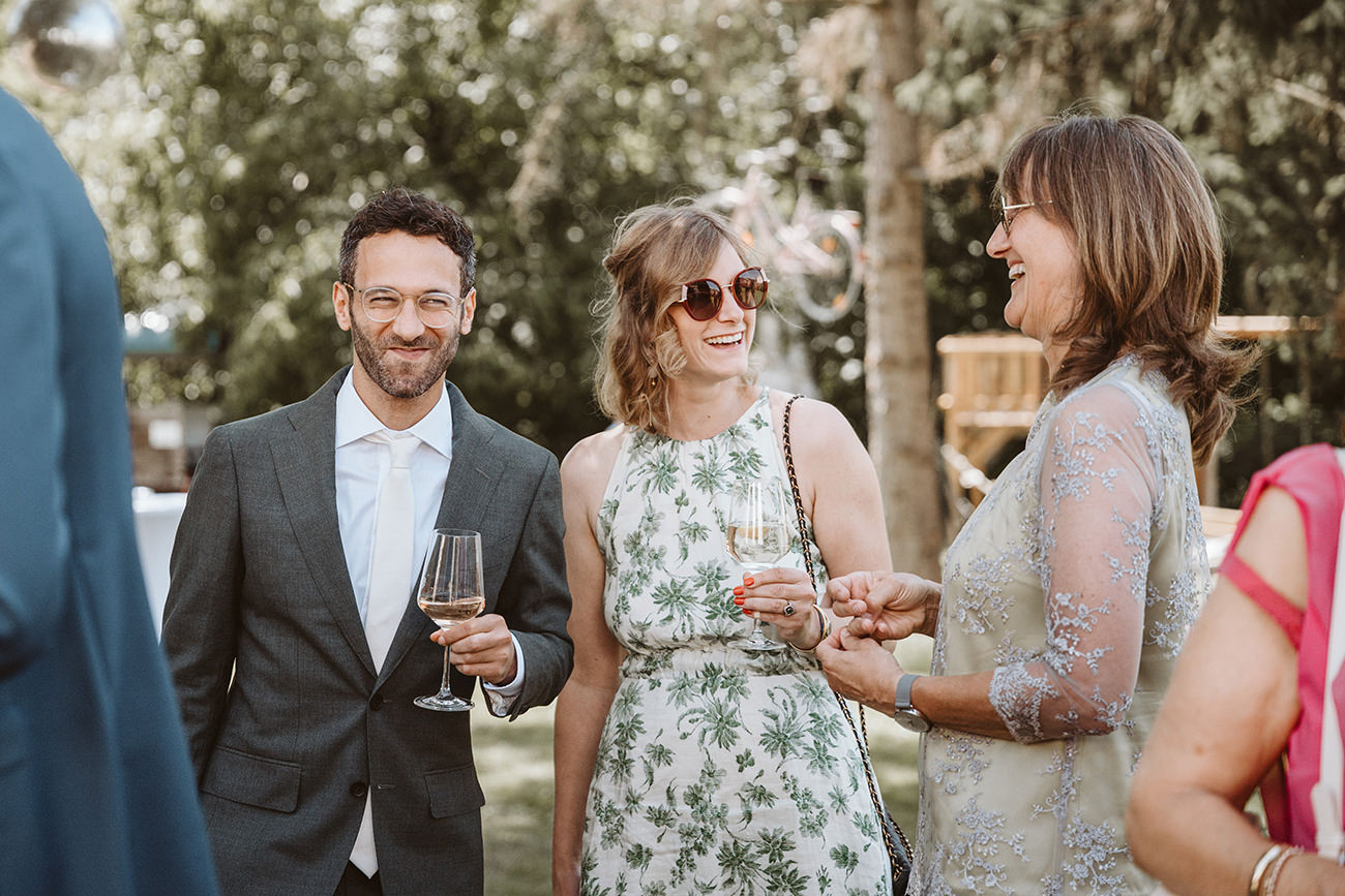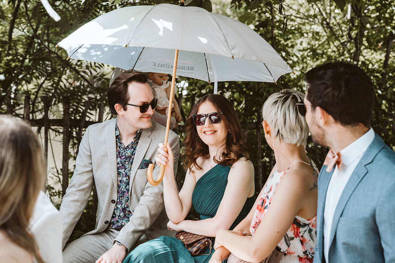 Nach dem First Look füllte sich der Garten der Stadtflucht Bergmühle langsam mit Gästen aus aller Welt. Freunde und Familie sind von rund um den Globus extra für diesen besonderen Anlass nach Wien geflogen, um gemeinsam mit Dori und Oli zu feiern.