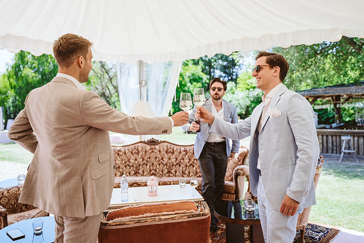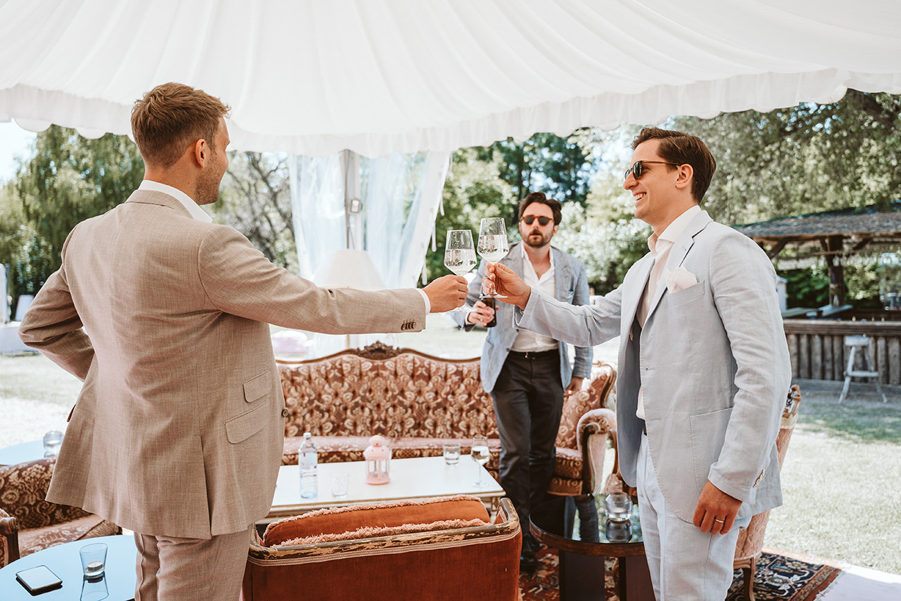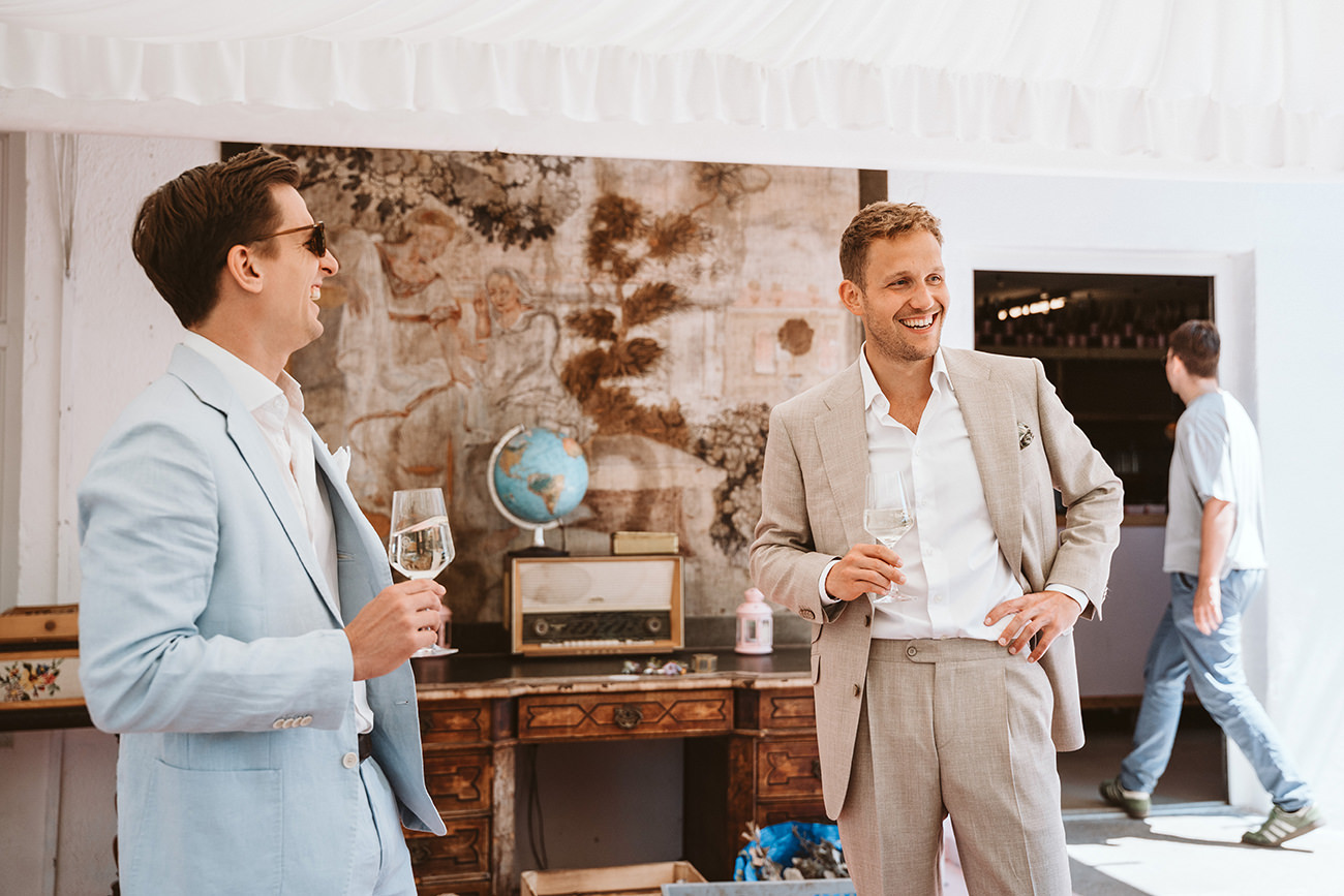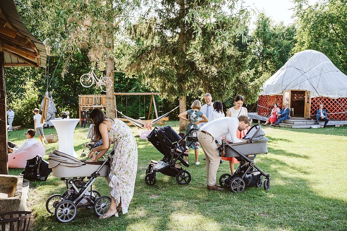 Nach dem First Look füllte sich der Garten der Stadtflucht Bergmühle langsam mit Gästen aus aller Welt. Freunde und Familie sind von rund um den Globus extra für diesen besonderen Anlass nach Wien geflogen, um gemeinsam mit Dori und Oli zu feiern.