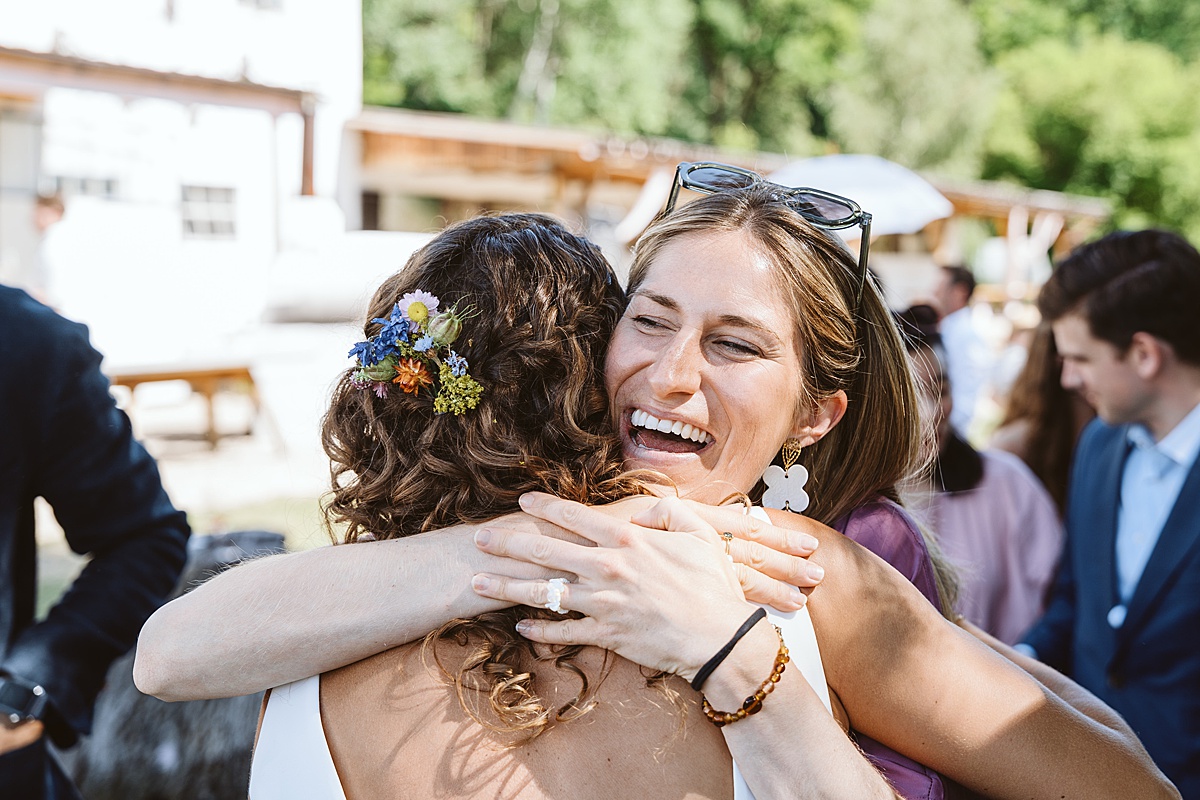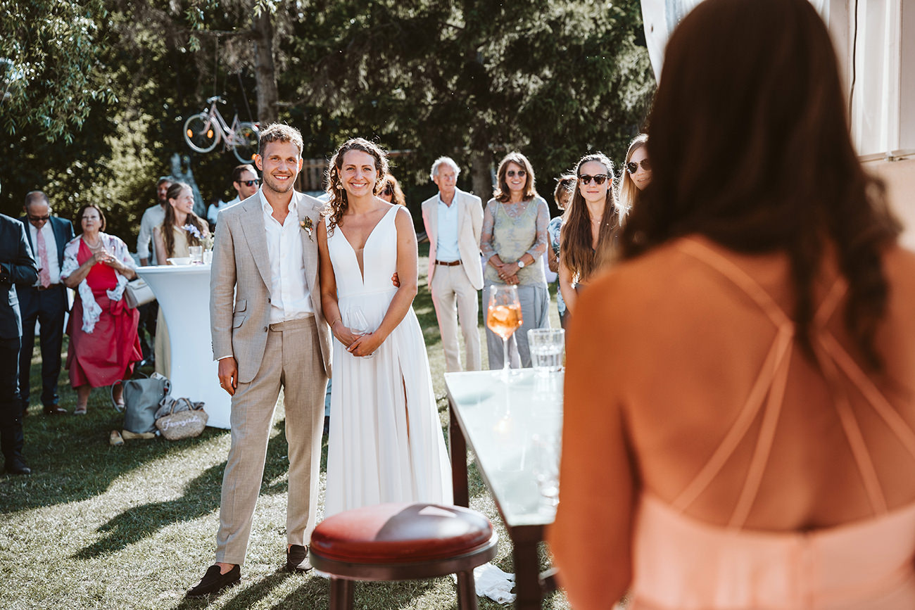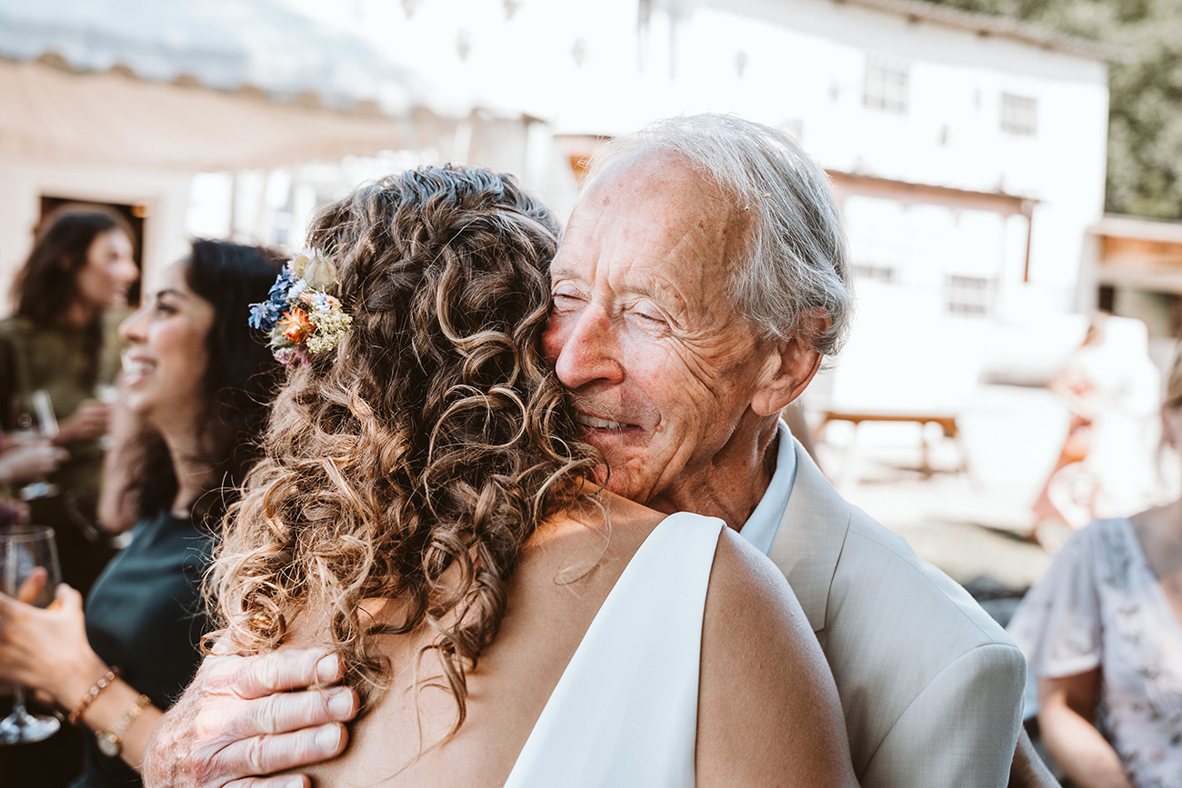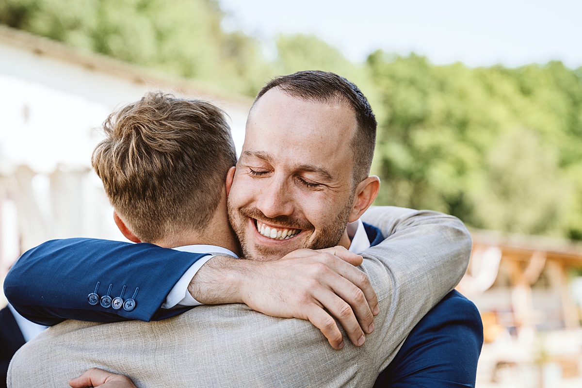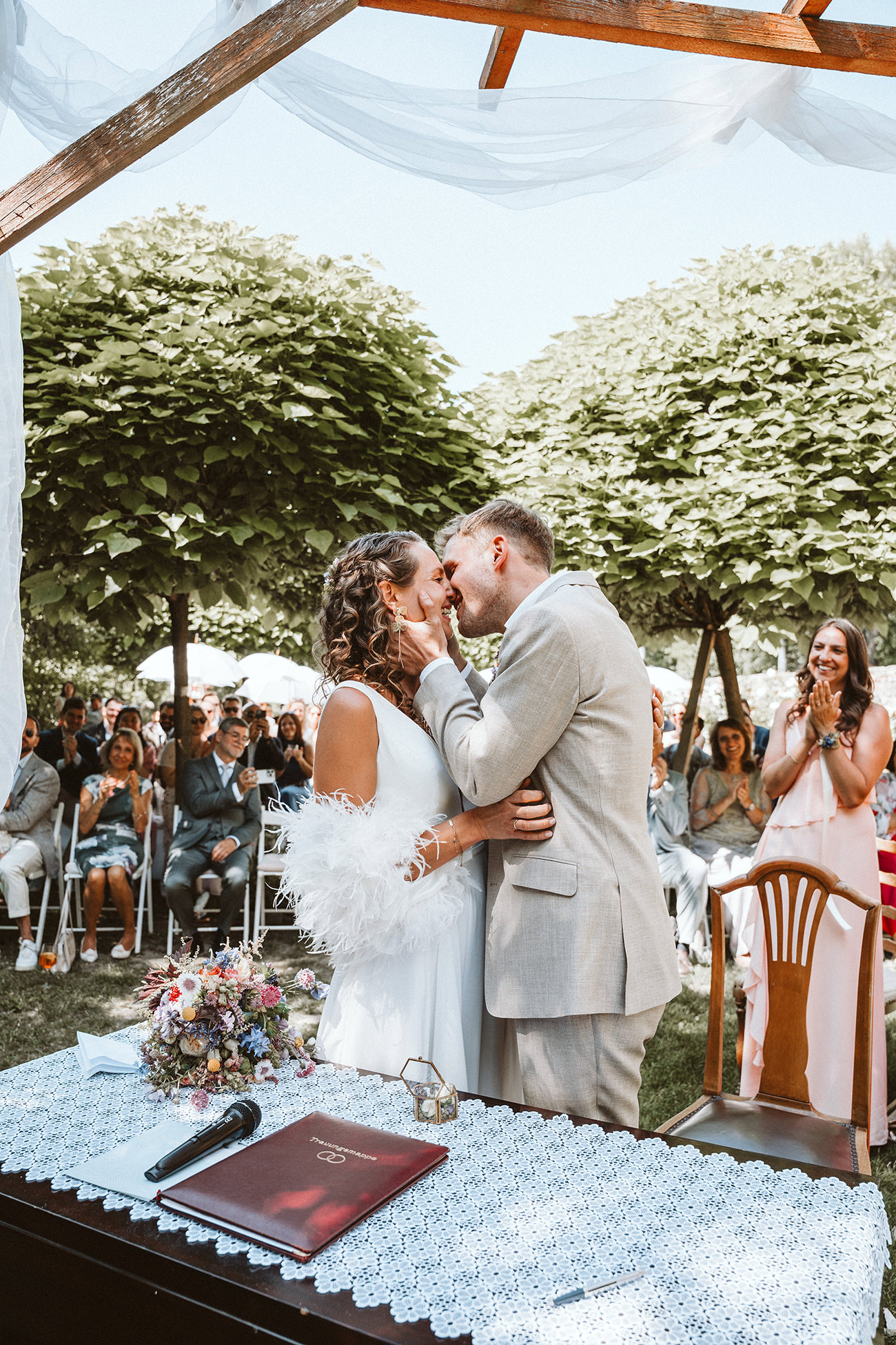 Bevor die eigentliche Trauung begann, entschieden sich Dori und Oli für einen First Look. Einen dieser magischen Momente, die einfach unter die Haut gehen. Ganz für sich allein, fern vom Trubel, sahen sie sich zum ersten Mal an diesem Tag. Die Aufregung, das Lächeln, die Umarmung…pure Emotion. Dieser Moment war ruhig, ehrlich und voller Liebe und somit der perfekte Start in einen Tag, der genau so entspannt weiterging.