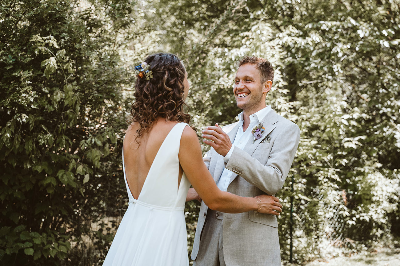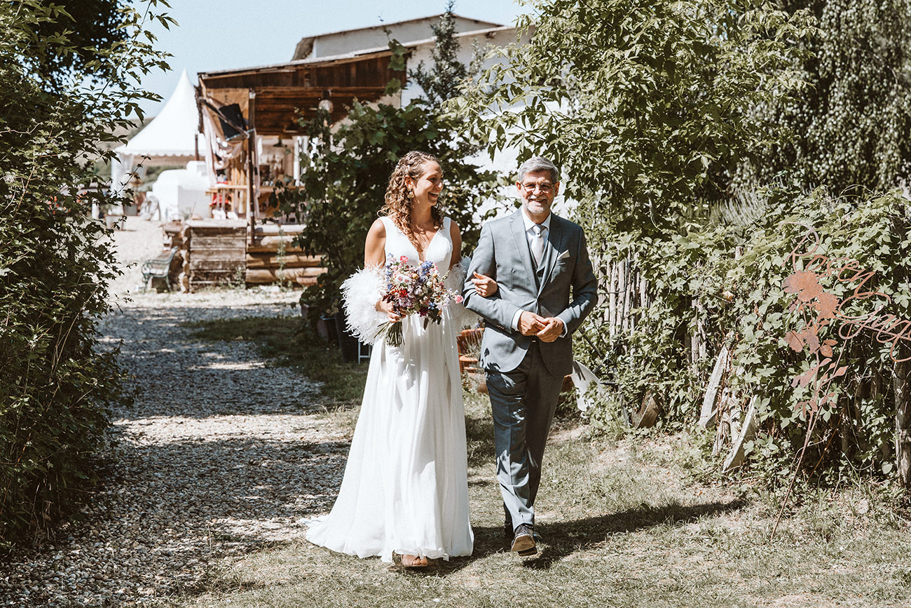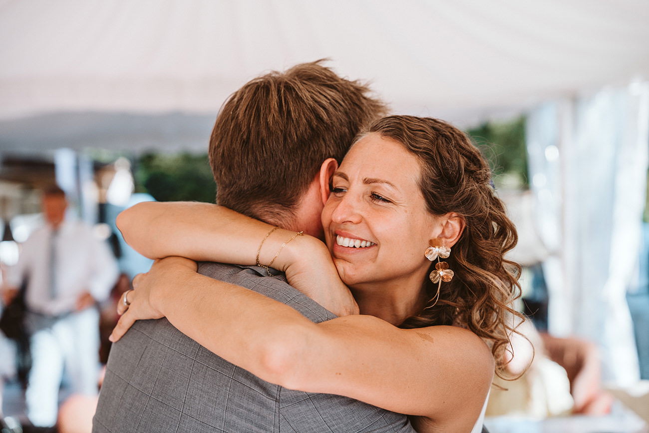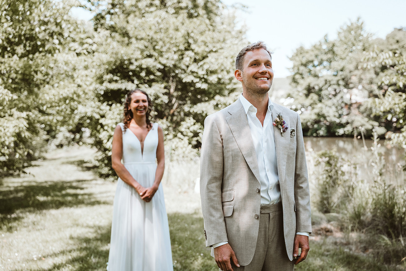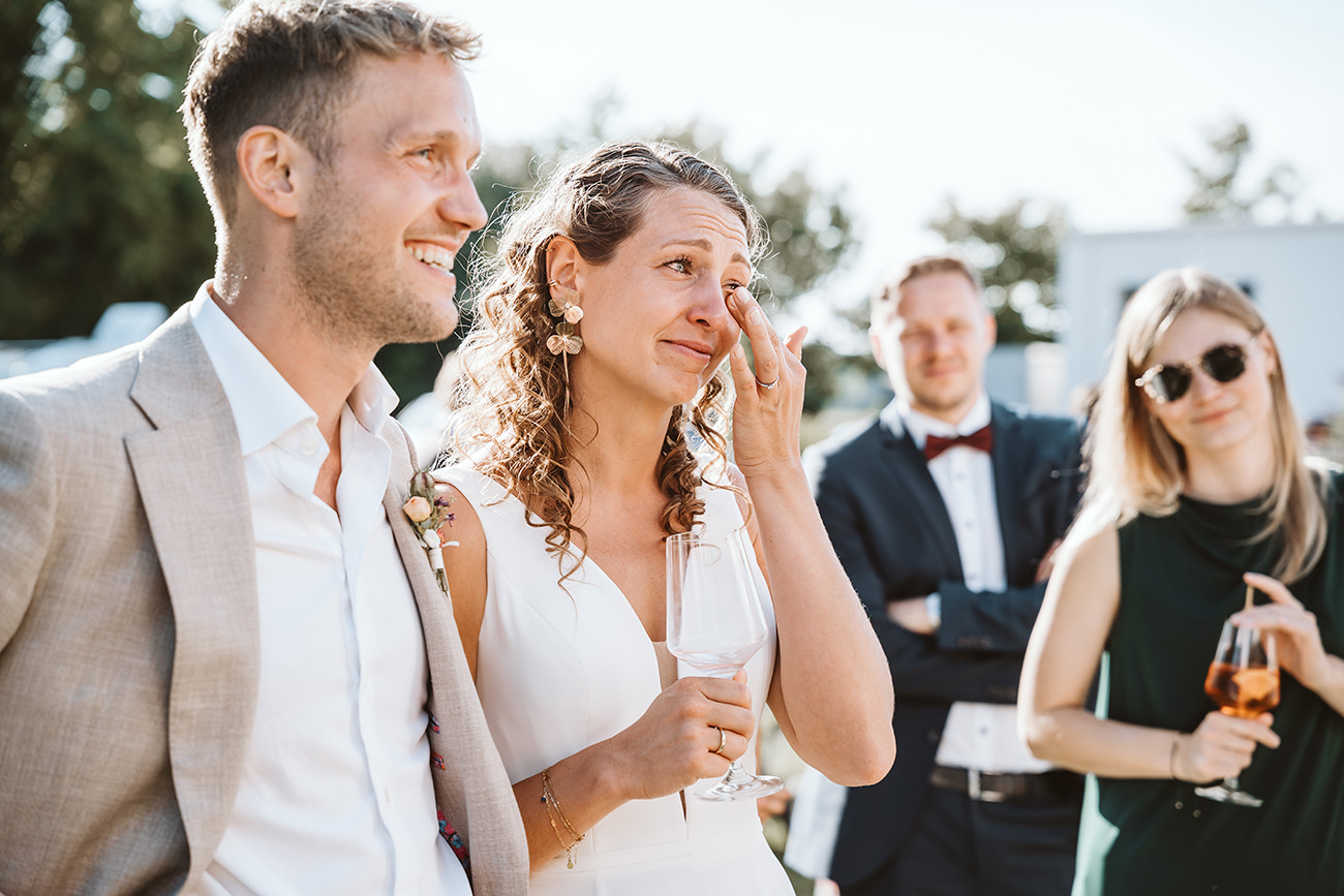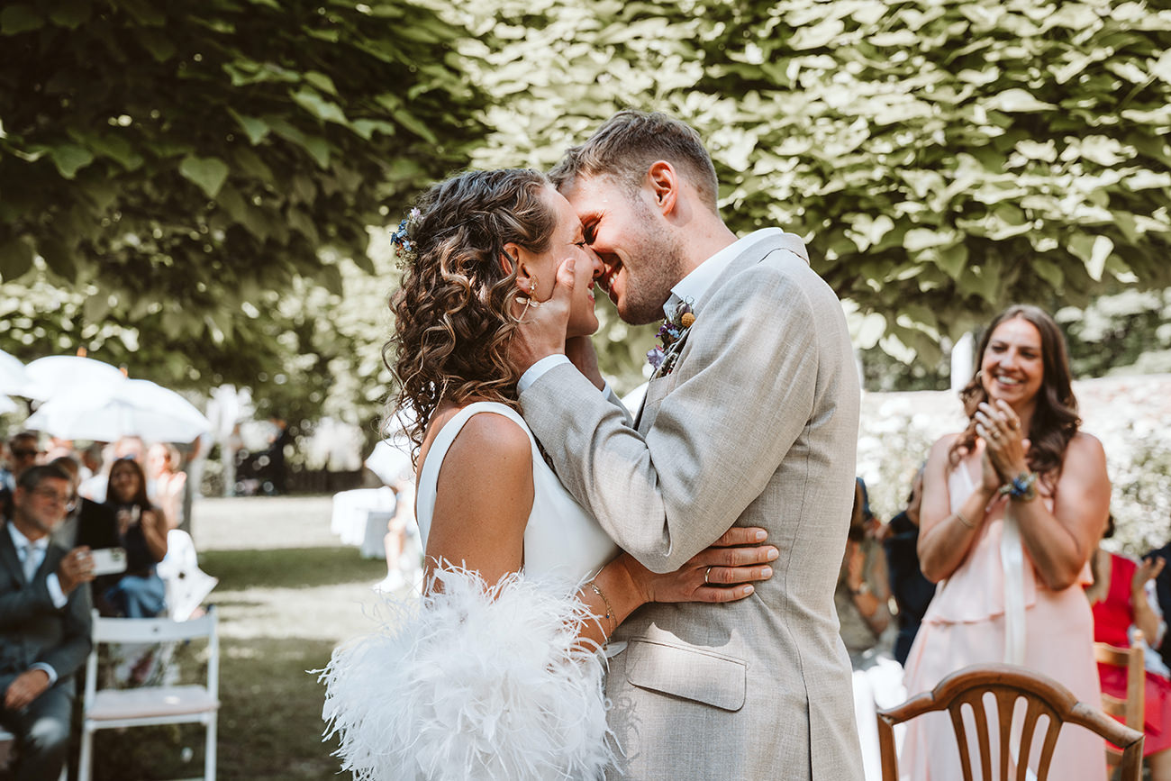 Bevor die eigentliche Trauung begann, entschieden sich Dori und Oli für einen First Look. Einen dieser magischen Momente, die einfach unter die Haut gehen. Ganz für sich allein, fern vom Trubel, sahen sie sich zum ersten Mal an diesem Tag. Die Aufregung, das Lächeln, die Umarmung…pure Emotion. Dieser Moment war ruhig, ehrlich und voller Liebe und somit der perfekte Start in einen Tag, der genau so entspannt weiterging.
