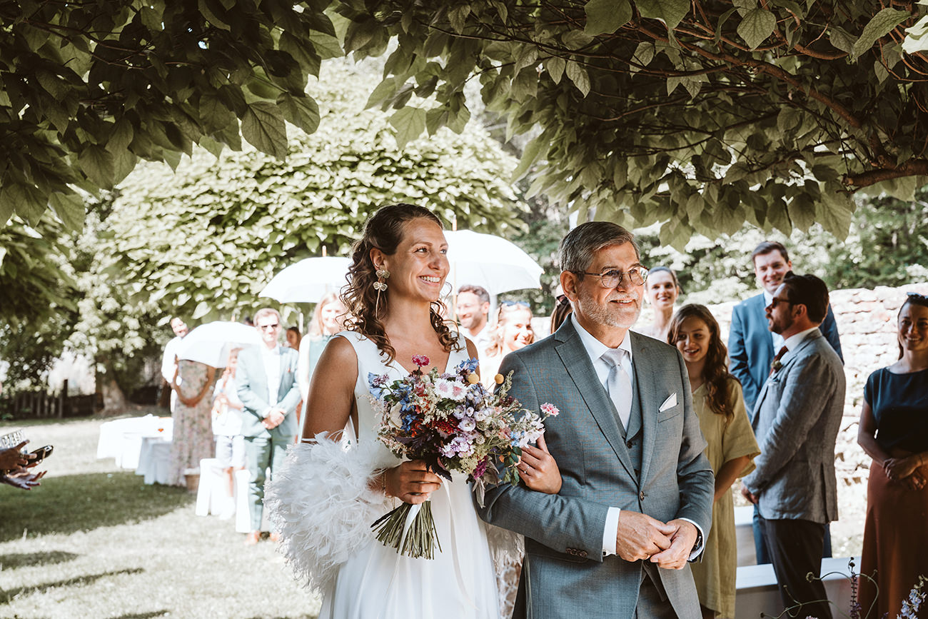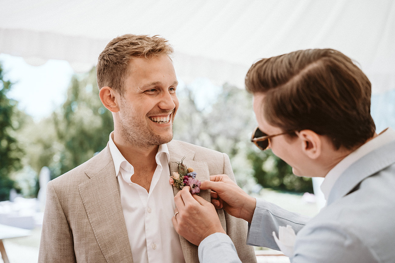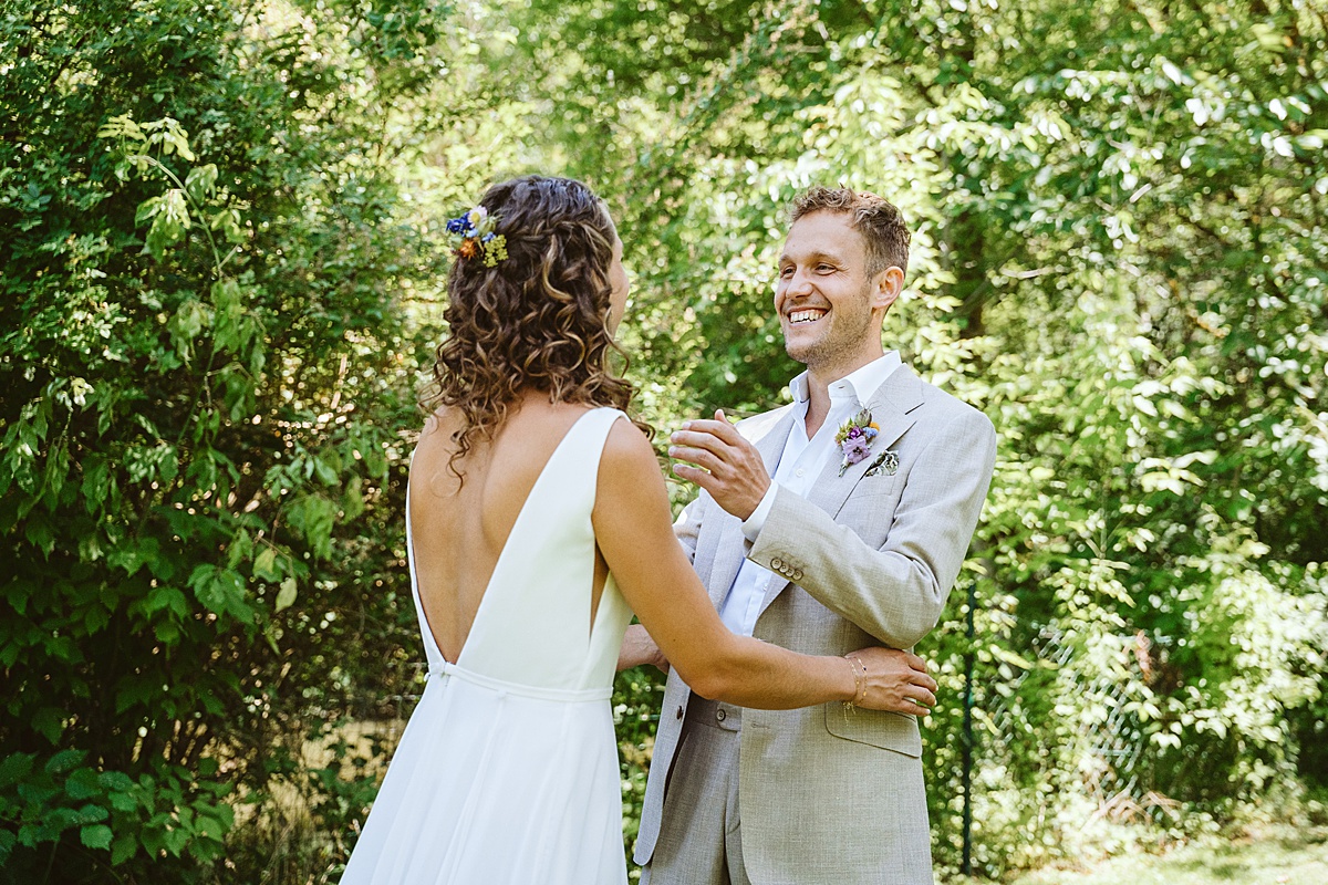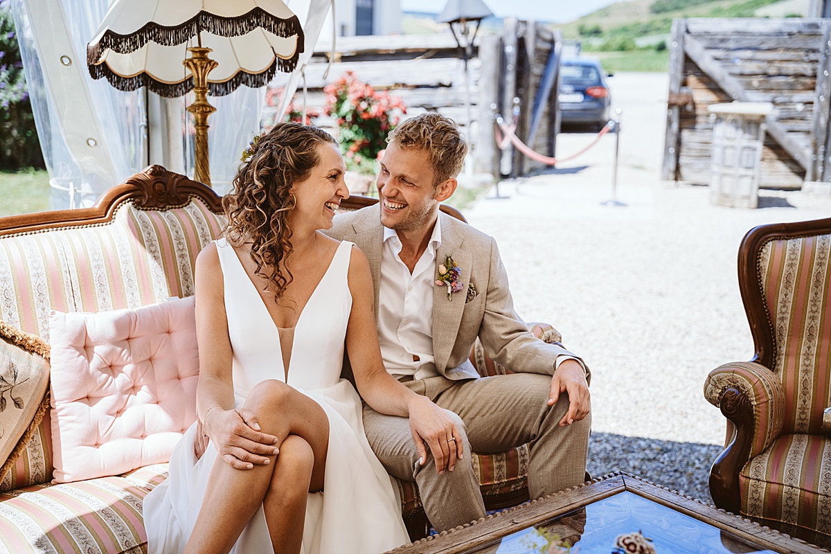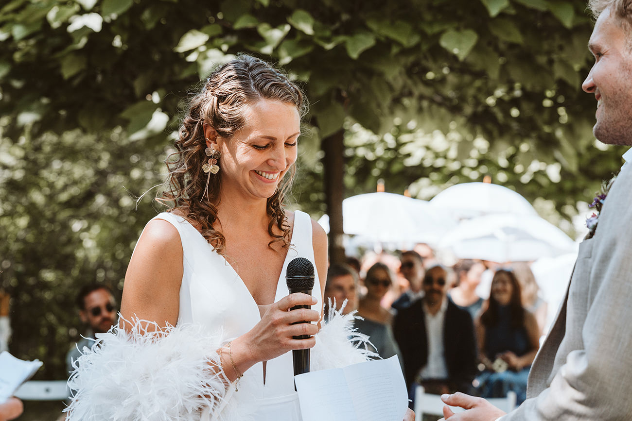 Bevor die eigentliche Trauung begann, entschieden sich Dori und Oli für einen First Look. Einen dieser magischen Momente, die einfach unter die Haut gehen. Ganz für sich allein, fern vom Trubel, sahen sie sich zum ersten Mal an diesem Tag. Die Aufregung, das Lächeln, die Umarmung…pure Emotion. Dieser Moment war ruhig, ehrlich und voller Liebe und somit der perfekte Start in einen Tag, der genau so entspannt weiterging.