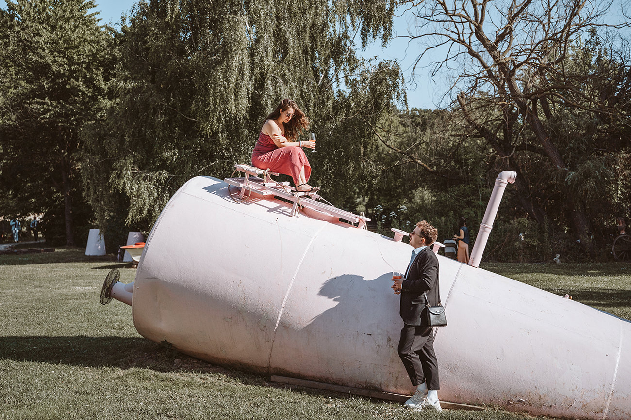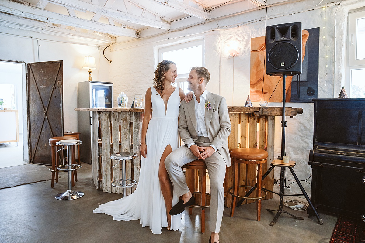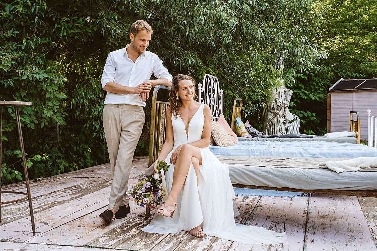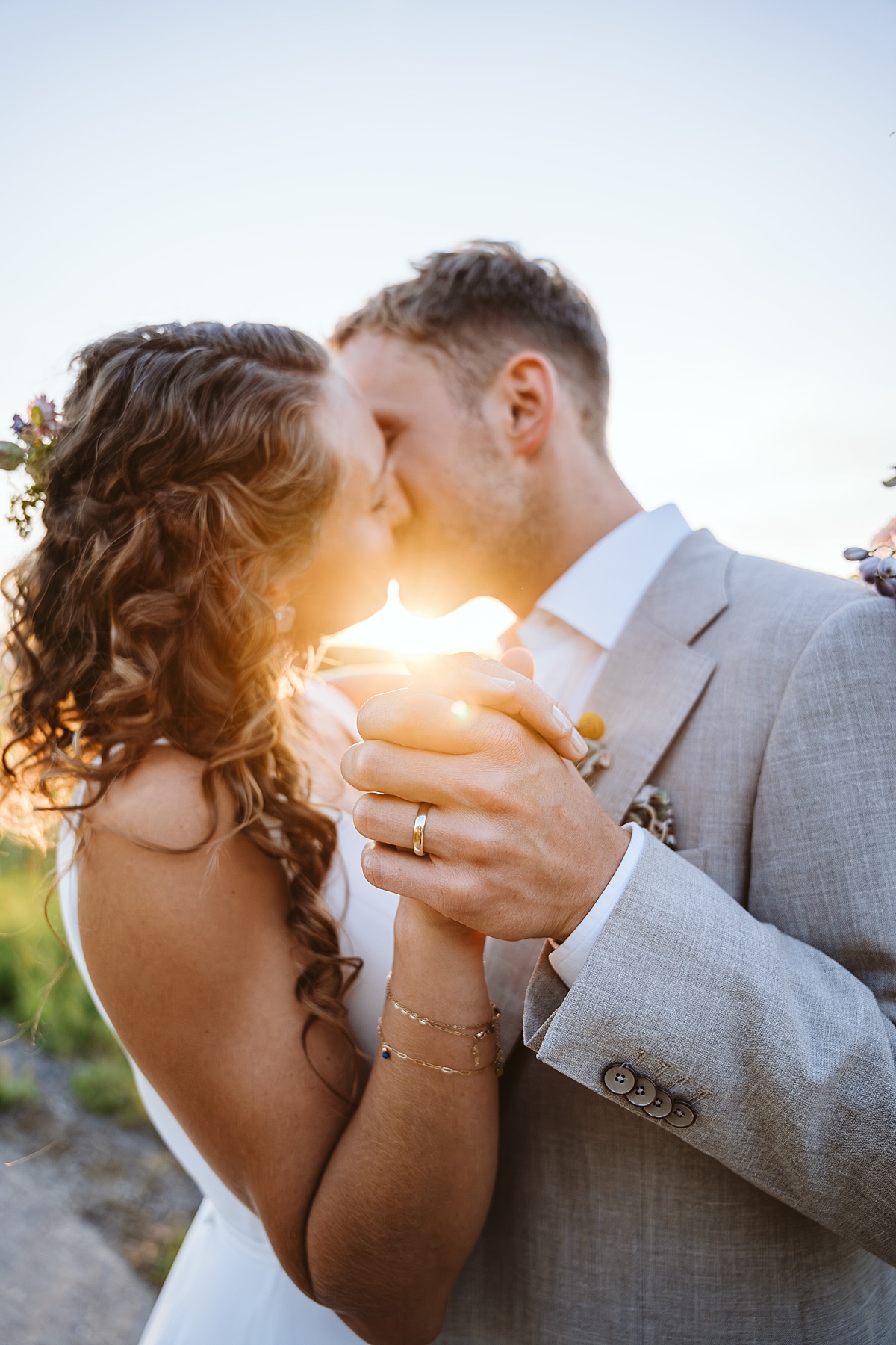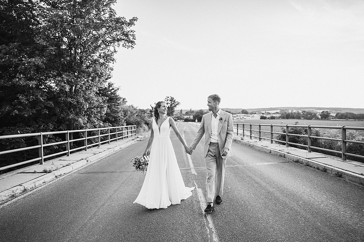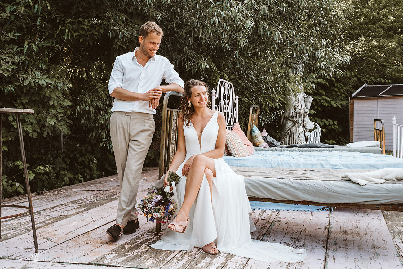 Die freie Trauung fand im Rosengarten statt und die Agape danach war geprägt von guter Musik, köstlichem Essen und jede Menge Spaß. Für die Brautpaarfotos haben wir uns zum Sonnenuntergang für das Feld direkt vor der Stadtflucht entschieden. Wobei wir vorher natürlich auch noch das ein oder andere Foto in der Location gemacht haben, die wirklich viel für Fotos hergibt.