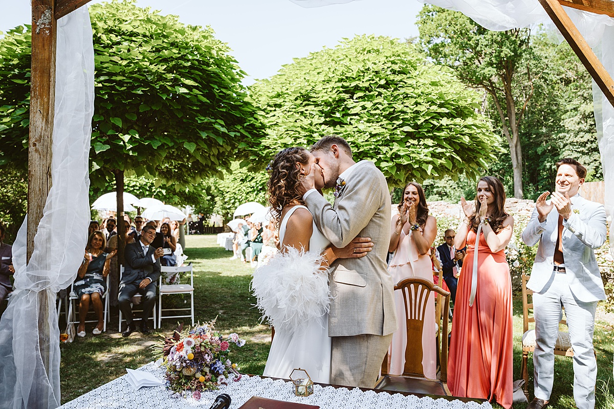 Die Stadtflucht Bergmühle ist einfach der perfekte Ort für so eine internationale Sommerhochzeit. Umgeben von Wiesen, alten Bäumen und dieser besonderen Atmosphäre, die sofort entschleunigt.