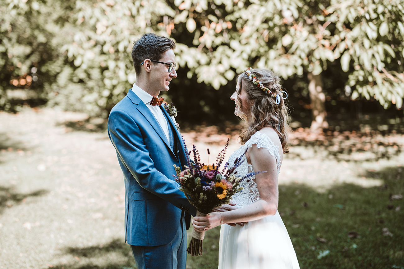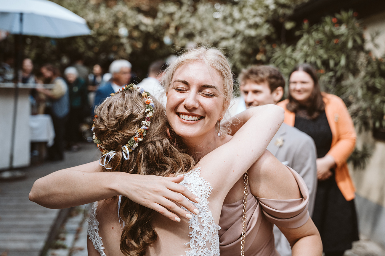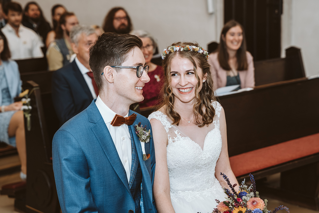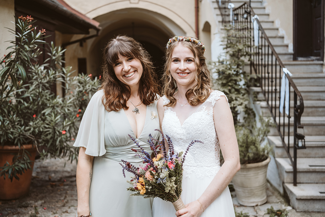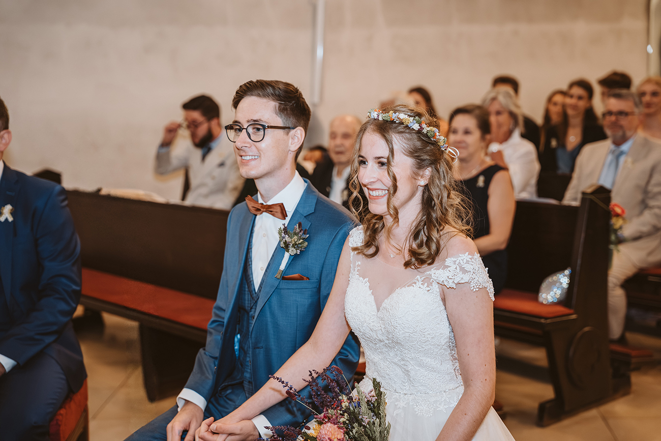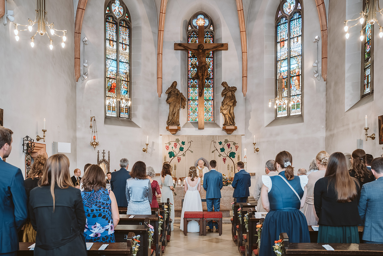 Anne-Sophie und Stefan entschieden sich für eine kirchliche Hochzeit in Wien, die genau zu ihnen passte: ehrlich, unkompliziert und ohne großen Schnickschnack. Gestartet hat der spätsommerliche Tag mit einem entspannten aber emotionalen First Look im Garten der Pfarrkirche Grinzing. Die beiden haben sich dort ein paar ruhige Minuten für sich genommen, bevor die Gäste eintrafen und die Trauung begann.