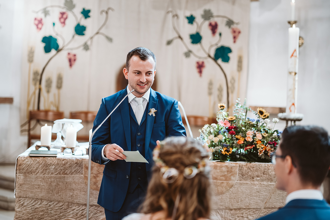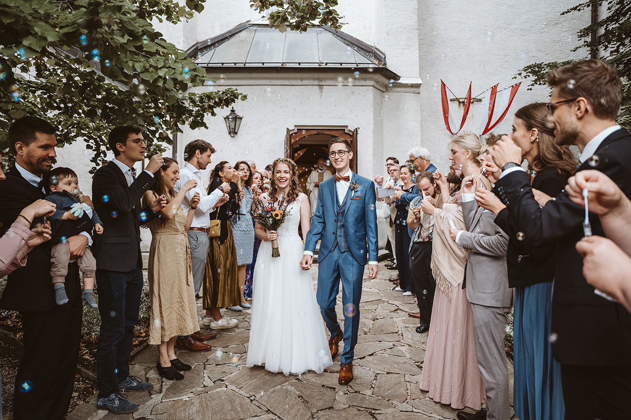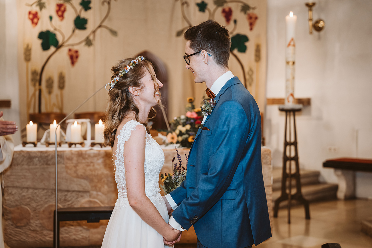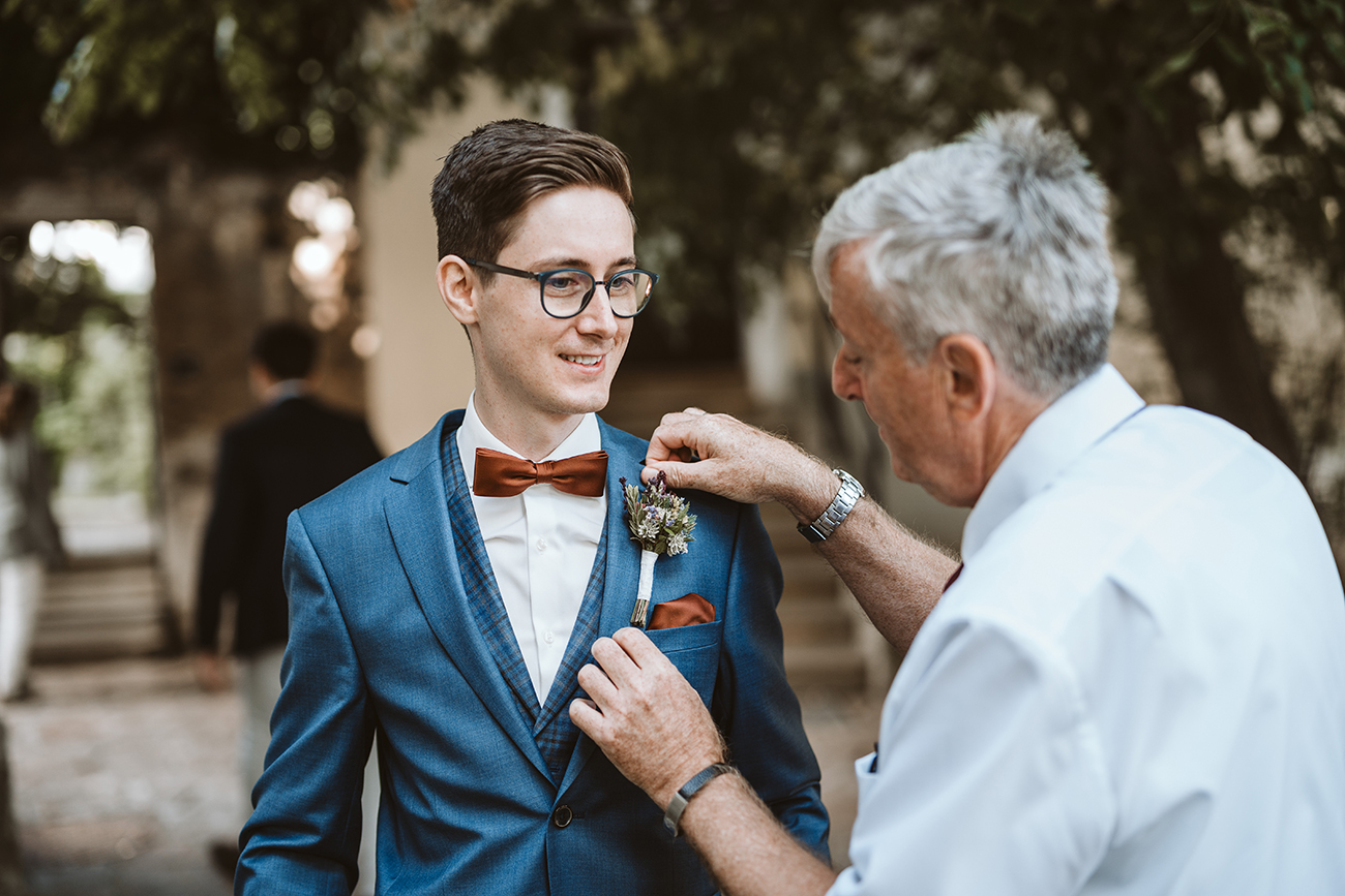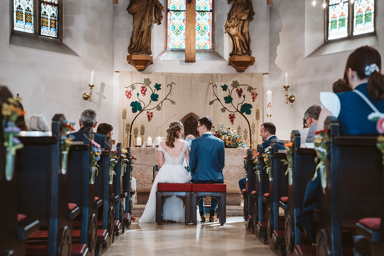 Anne-Sophie und Stefan entschieden sich für eine kirchliche Hochzeit in Wien, die genau zu ihnen passte: ehrlich, unkompliziert und ohne großen Schnickschnack. Gestartet hat der spätsommerliche Tag mit einem entspannten aber emotionalen First Look im Garten der Pfarrkirche Grinzing. Die beiden haben sich dort ein paar ruhige Minuten für sich genommen, bevor die Gäste eintrafen und die Trauung begann.