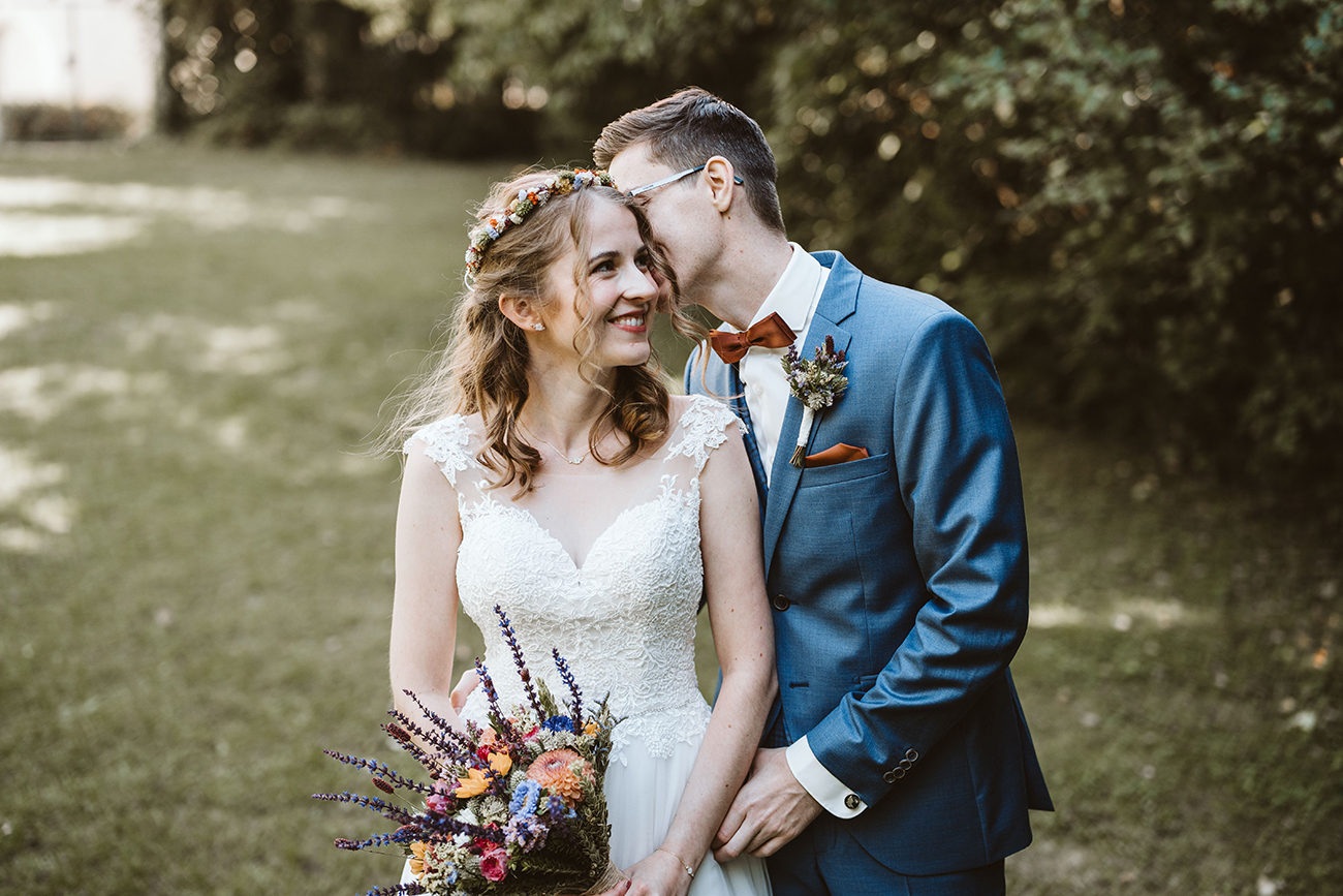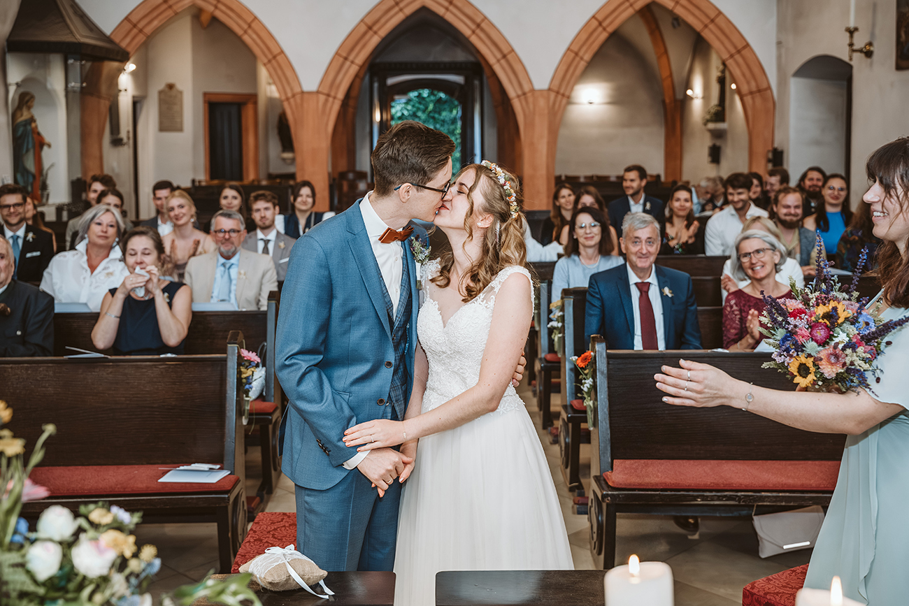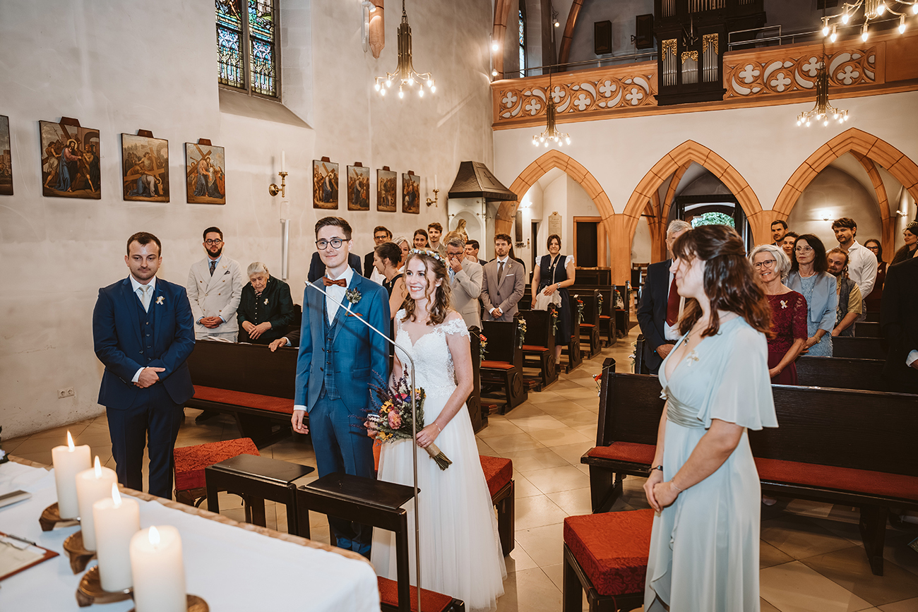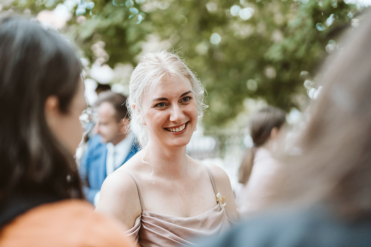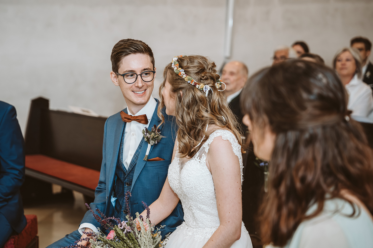 Anne-Sophie und Stefan entschieden sich für eine kirchliche Hochzeit in Wien, die genau zu ihnen passte: ehrlich, unkompliziert und ohne großen Schnickschnack. Gestartet hat der spätsommerliche Tag mit einem entspannten aber emotionalen First Look im Garten der Pfarrkirche Grinzing. Die beiden haben sich dort ein paar ruhige Minuten für sich genommen, bevor die Gäste eintrafen und die Trauung begann.