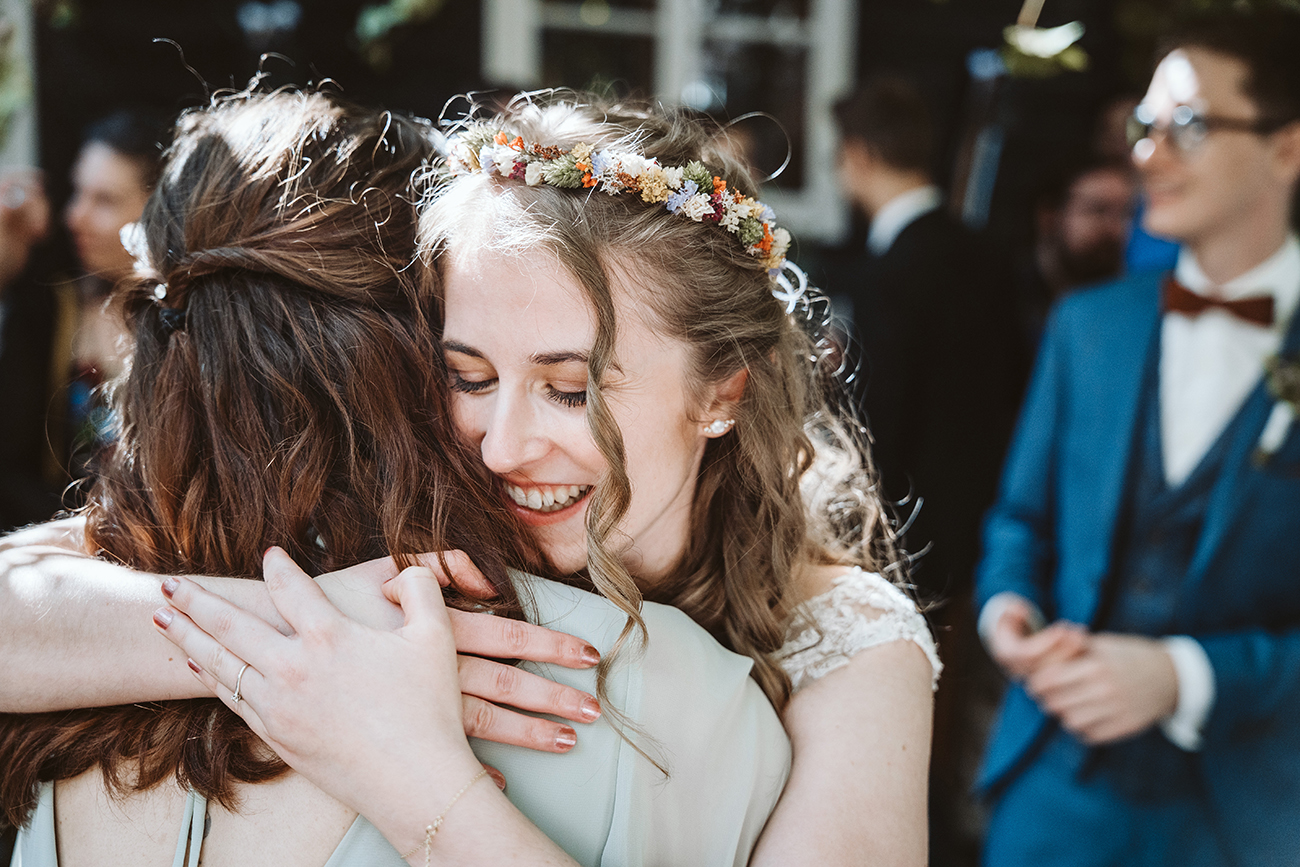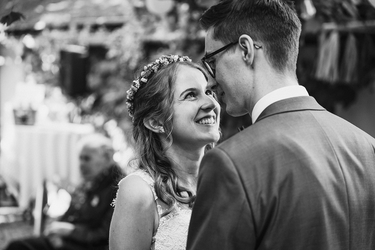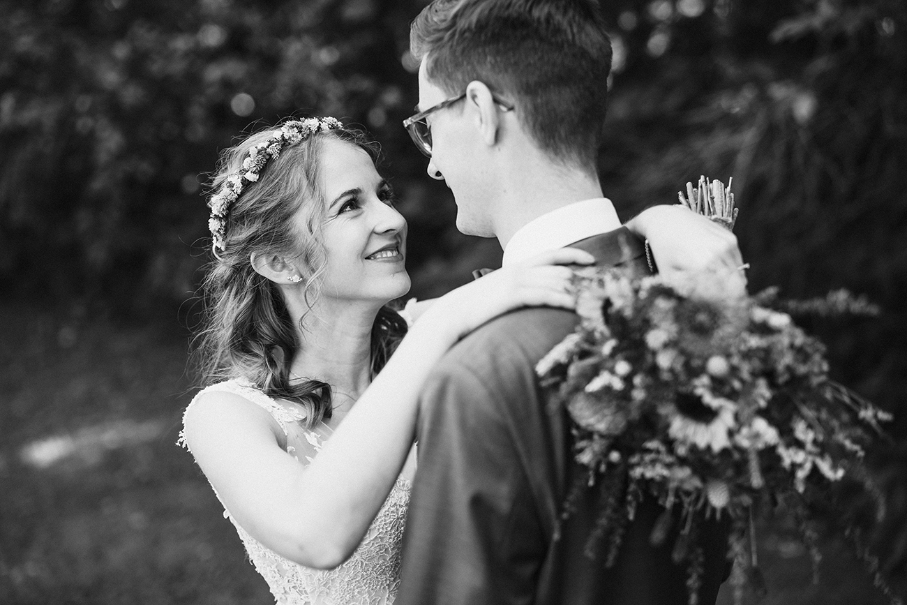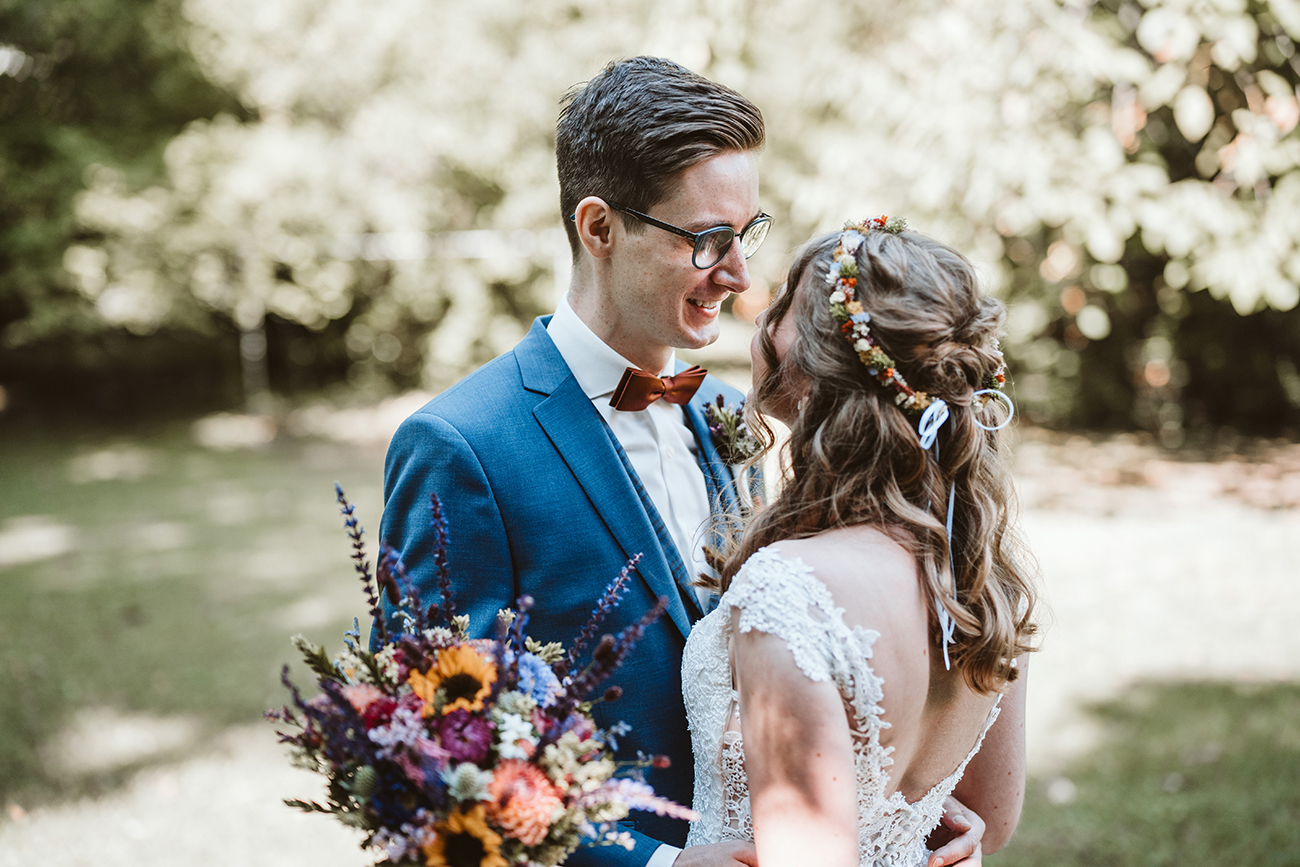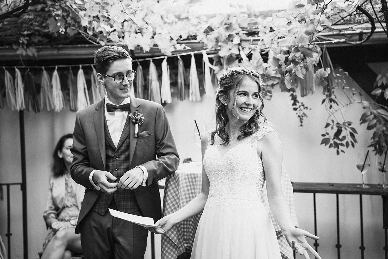 Anne-Sophie und Stefan entschieden sich für eine kirchliche Hochzeit in Wien, die genau zu ihnen passte: ehrlich, unkompliziert und ohne großen Schnickschnack. Gestartet hat der spätsommerliche Tag mit einem entspannten aber emotionalen First Look im Garten der Pfarrkirche Grinzing. Die beiden haben sich dort ein paar ruhige Minuten für sich genommen, bevor die Gäste eintrafen und die Trauung begann.