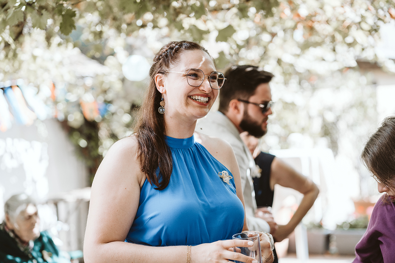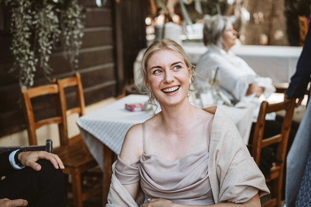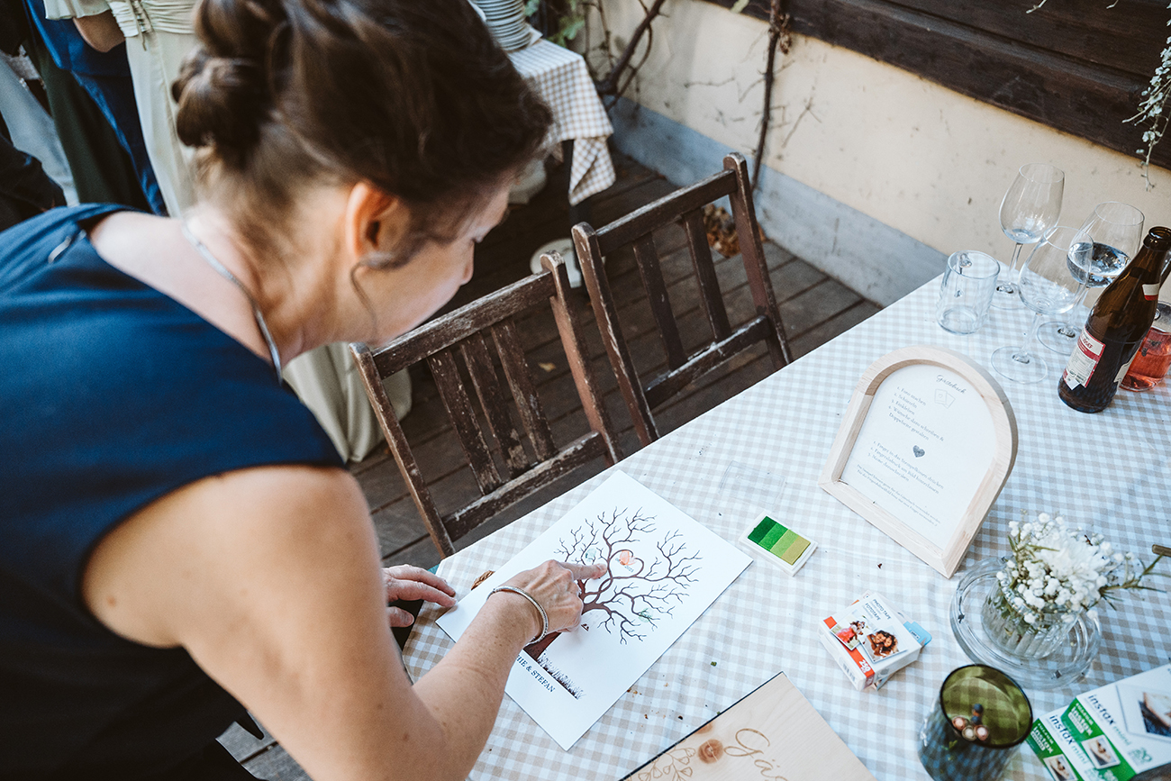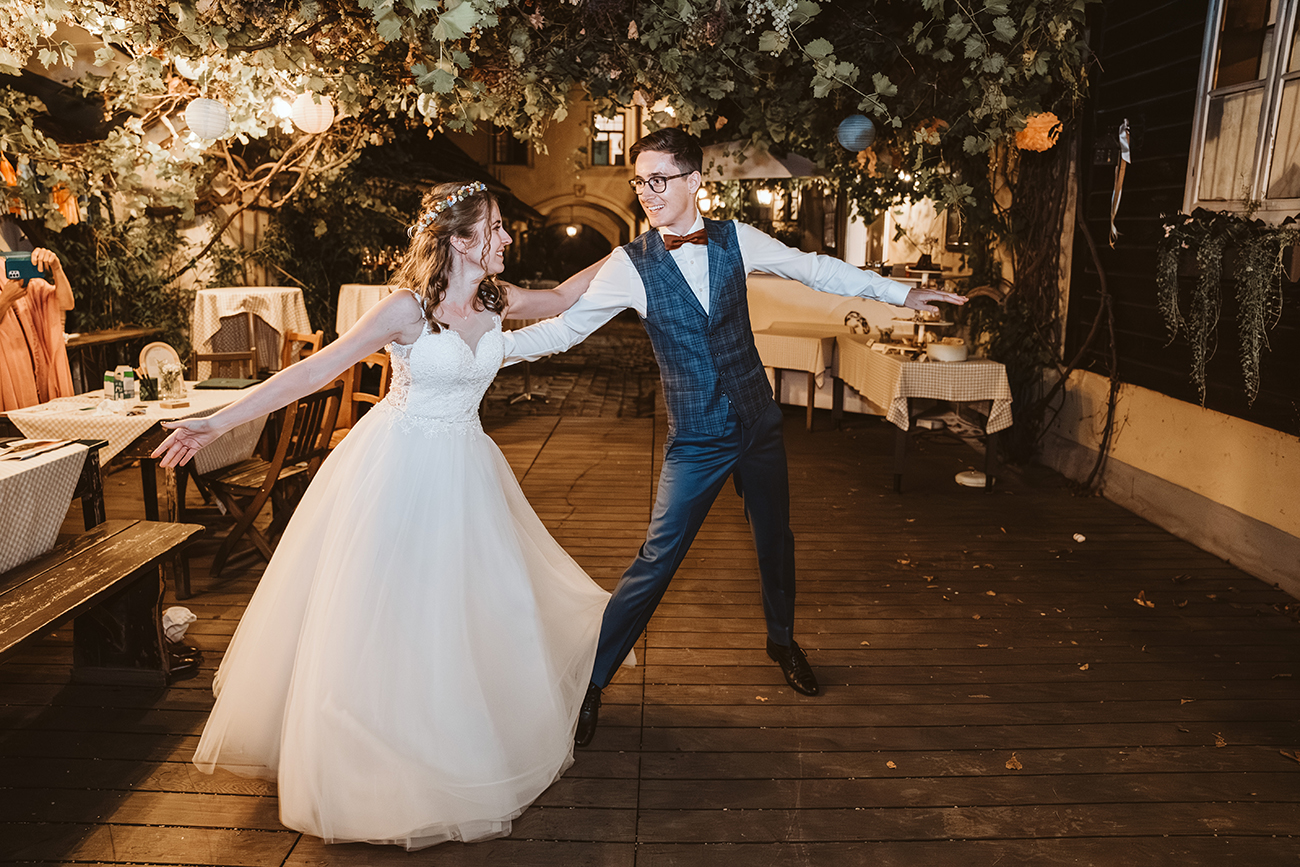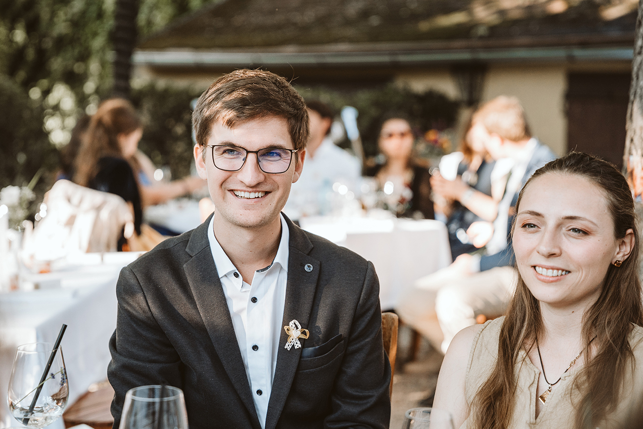 Nach der Zeremonie ging es weiter zum Heurigen Schübel-Auer in Nussdorf, einer gemütlichen Location, die perfekt zum lockeren Ablauf des Tages passte. Statt einer klassischen Hochzeitstorte gab es Hochzeitsgugelhupf – praktisch, unkompliziert und bei allen sofort beliebt.