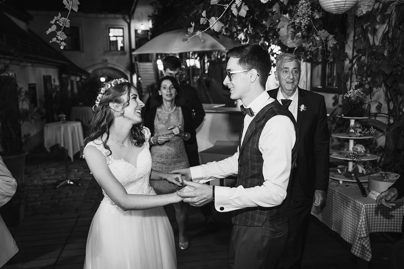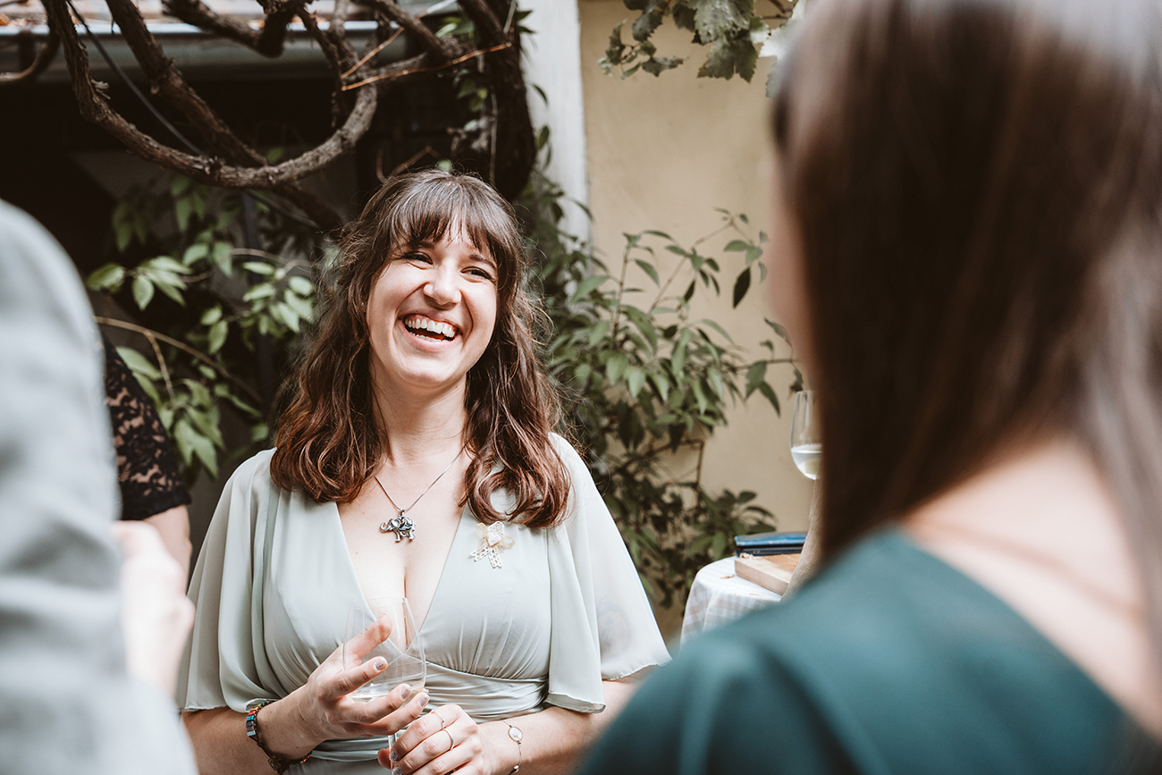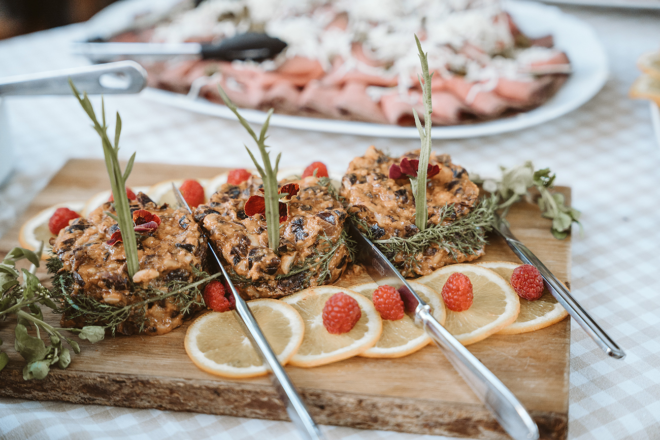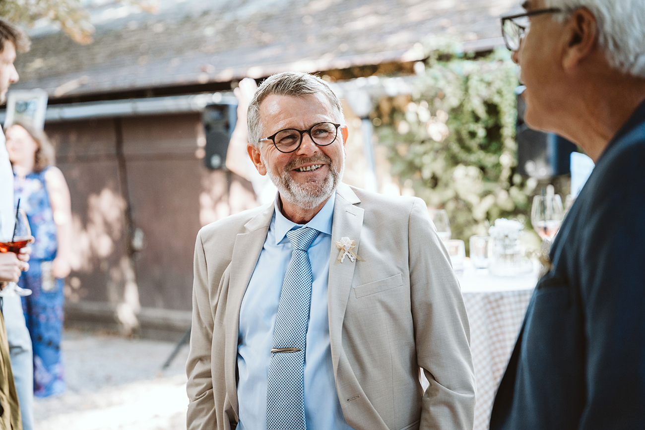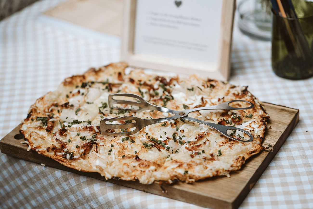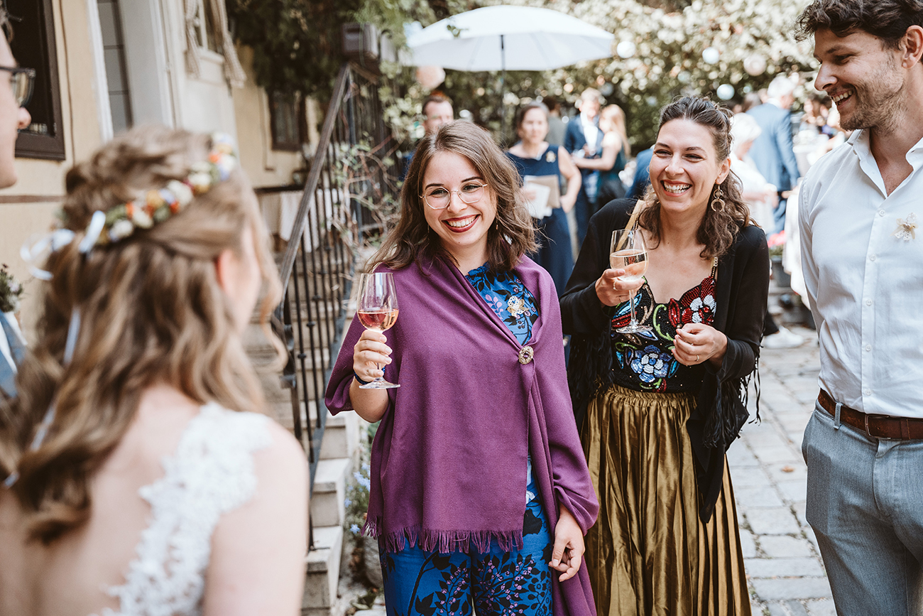 Nach der Zeremonie ging es weiter zum Heurigen Schübel-Auer in Nussdorf, einer gemütlichen Location, die perfekt zum lockeren Ablauf des Tages passte. Statt einer klassischen Hochzeitstorte gab es Hochzeitsgugelhupf – praktisch, unkompliziert und bei allen sofort beliebt.