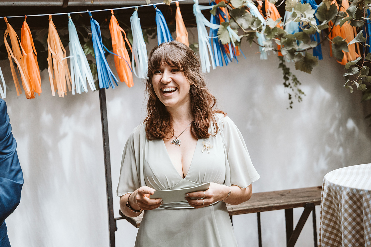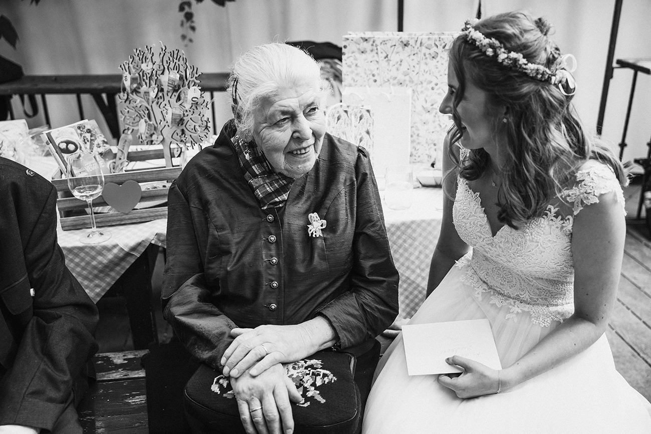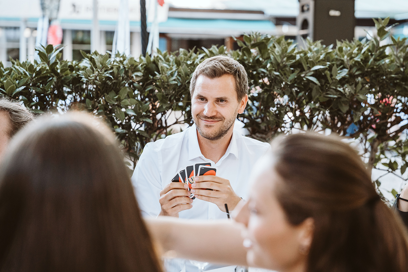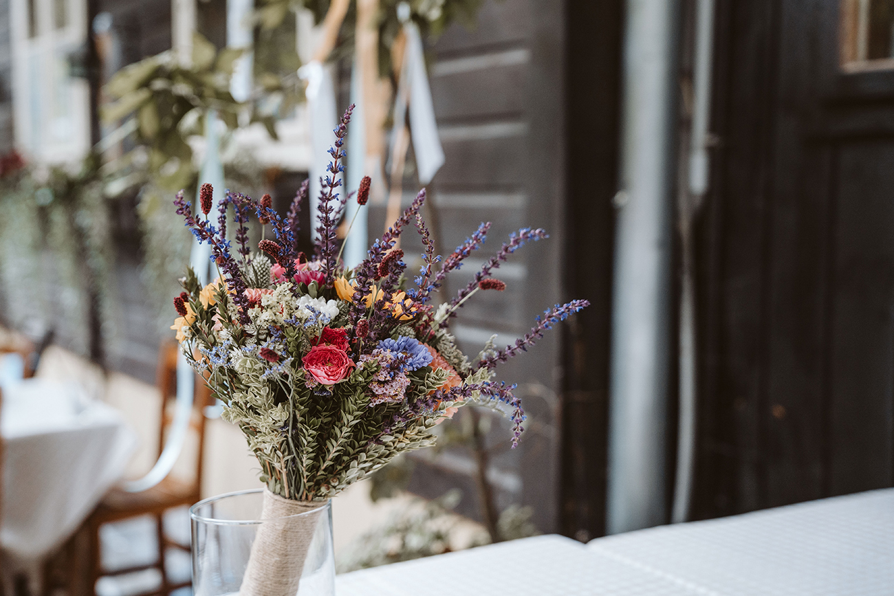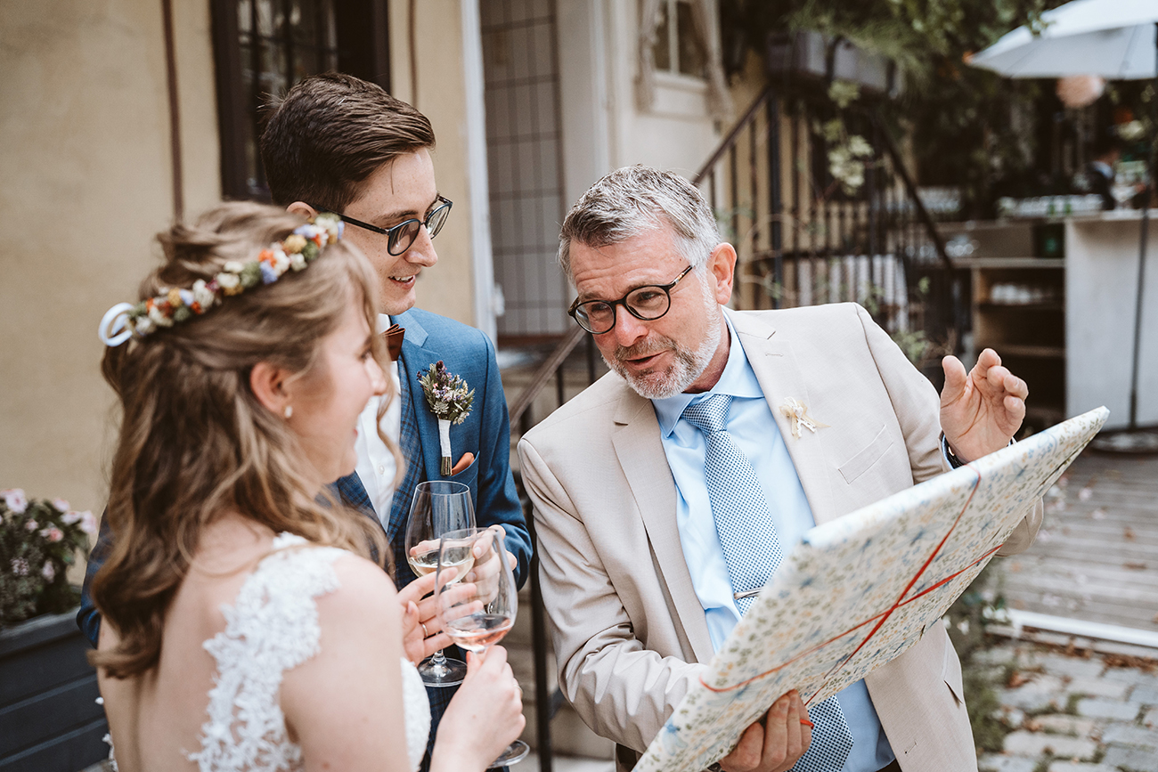 Nach der Zeremonie ging es weiter zum Heurigen Schübel-Auer in Nussdorf, einer gemütlichen Location, die perfekt zum lockeren Ablauf des Tages passte. Statt einer klassischen Hochzeitstorte gab es Hochzeitsgugelhupf – praktisch, unkompliziert und bei allen sofort beliebt.