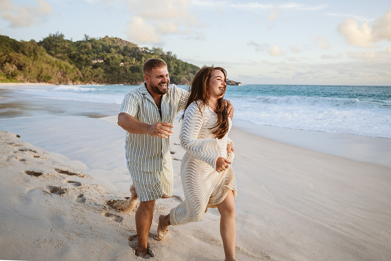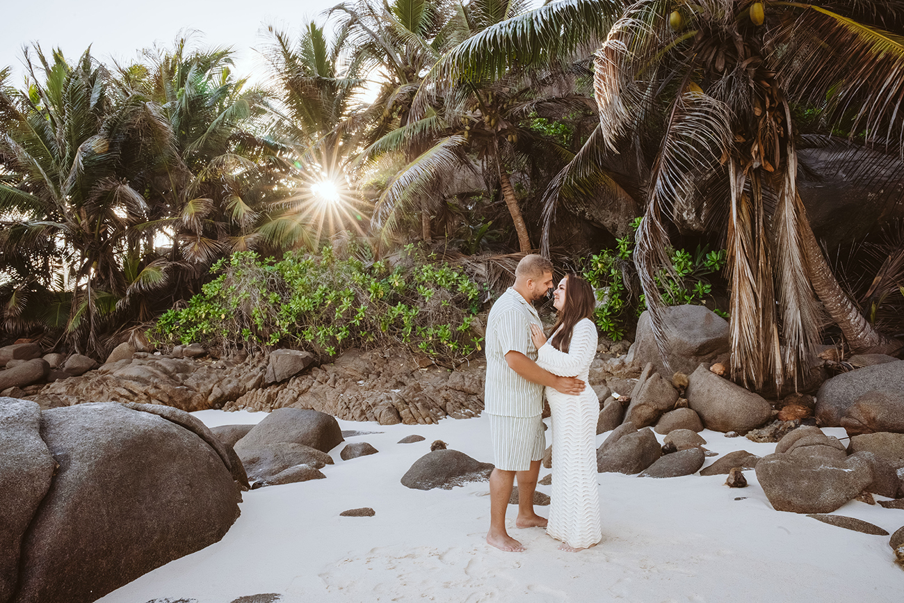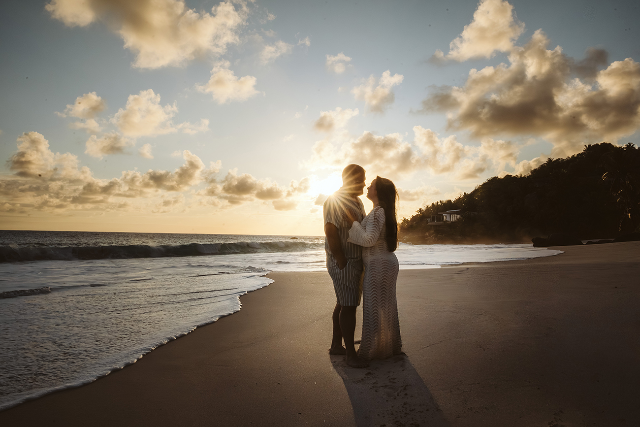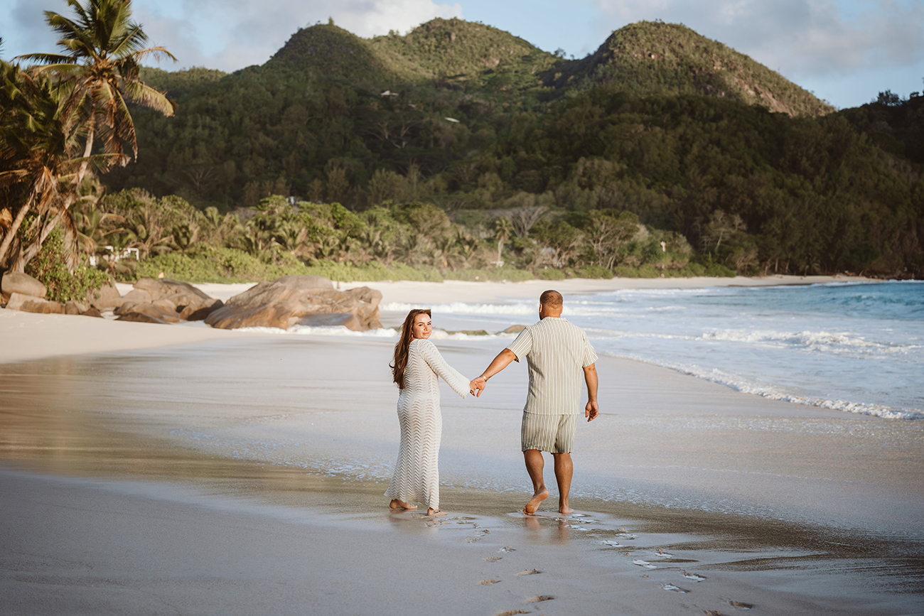 Mit Mareen und Giovanni durfte ich ein entspanntes Paarshooting an der Anse Intendance auf Mahé begleiten – einer der Strände, an denen das Licht zum Sonnenuntergang besonders eindrucksvoll sein kann.
