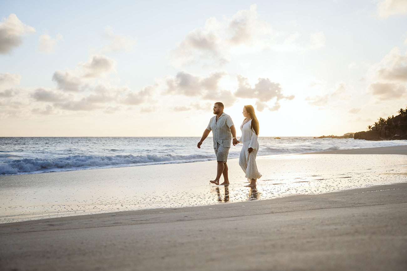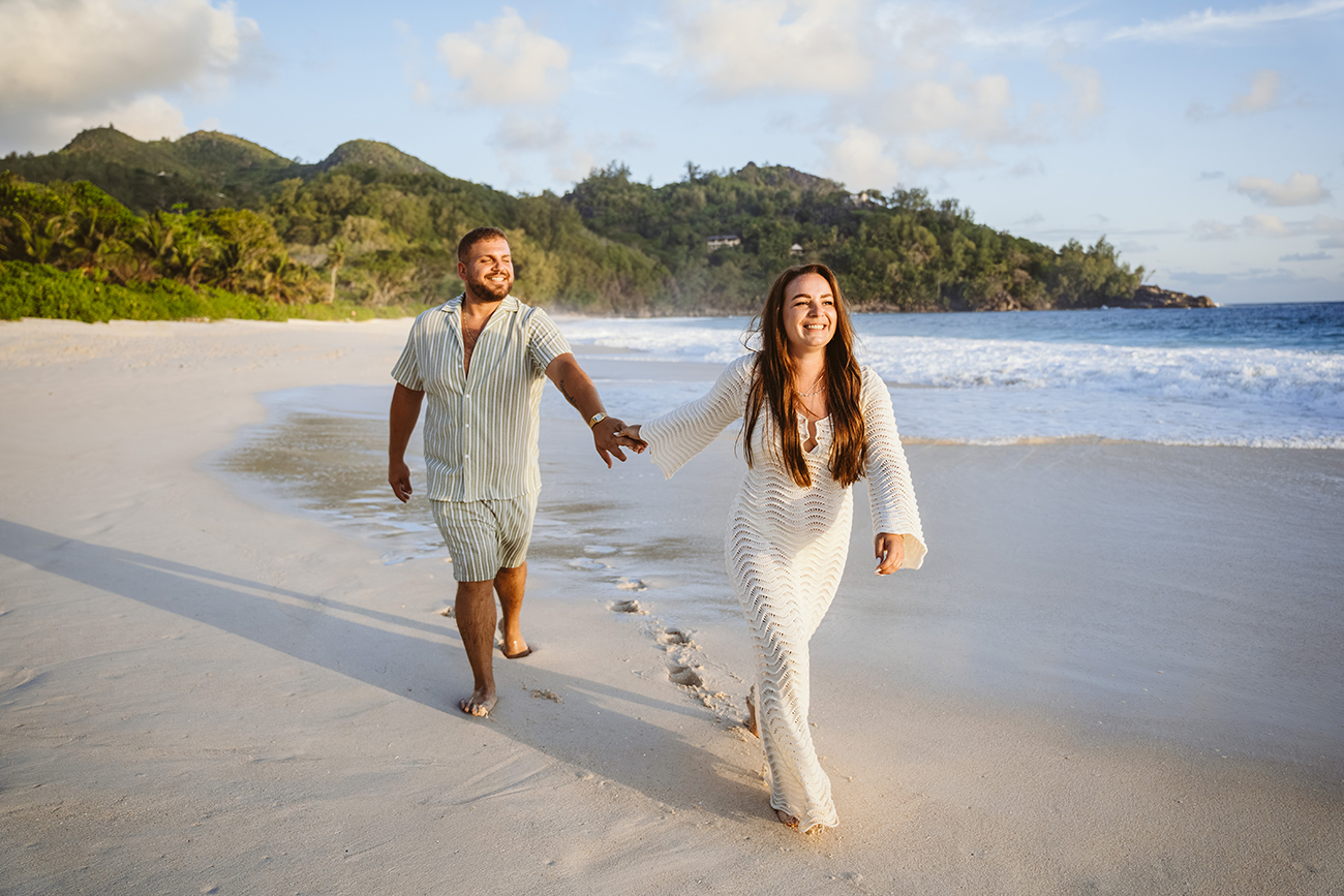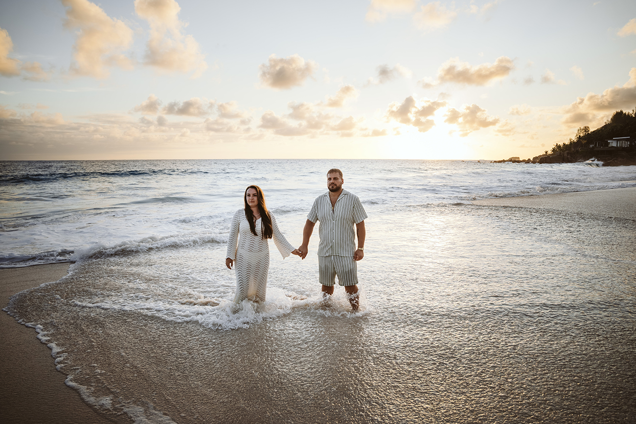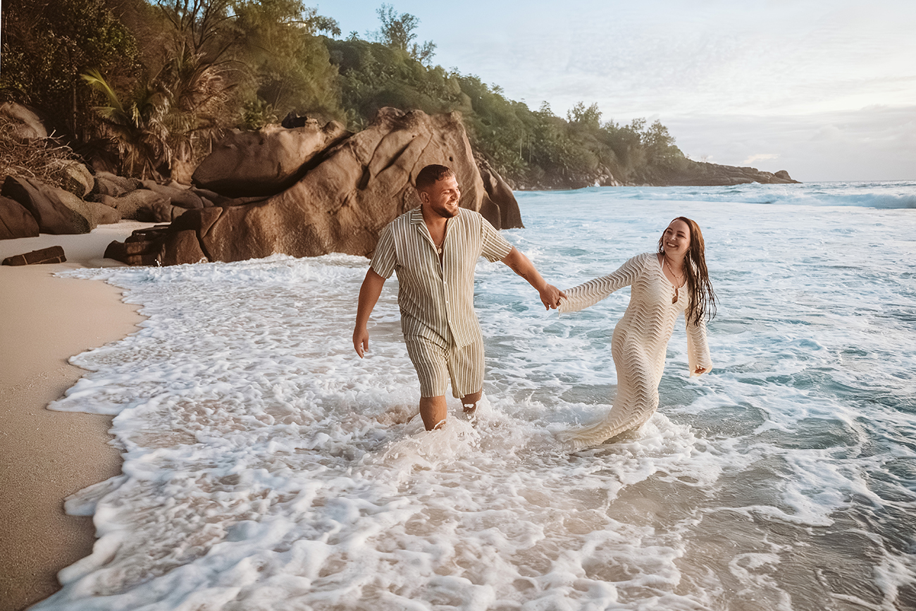 Mit Mareen und Giovanni durfte ich ein entspanntes Paarshooting an der Anse Intendance auf Mahé begleiten – einer der Strände, an denen das Licht zum Sonnenuntergang besonders eindrucksvoll sein kann.